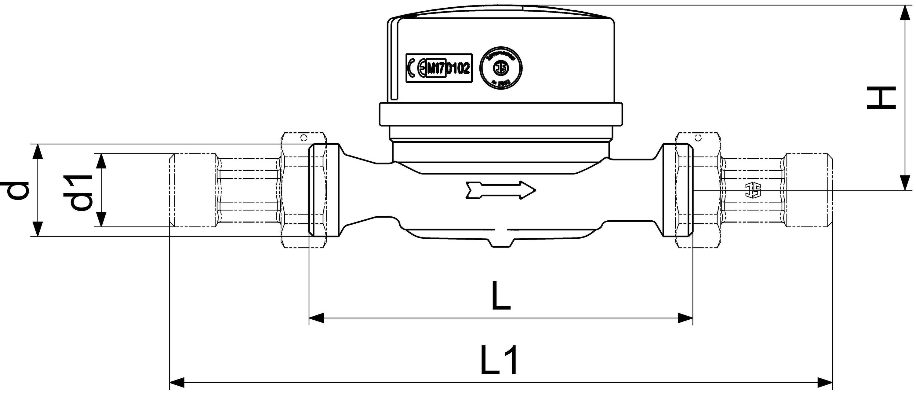 Schlösser Armaturen JS Einstrahlzaehl. ETW Modularis BIS 90 GRAD, 3=2,5, G 3/4",80MM