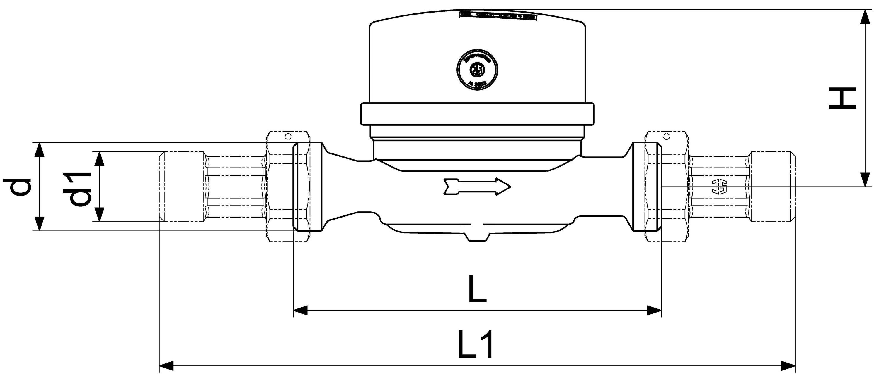 Schlösser Armaturen JS Einstrahlzaehler ETK BIS 30 GRAD, 3=2,5, G 3/4",80MM