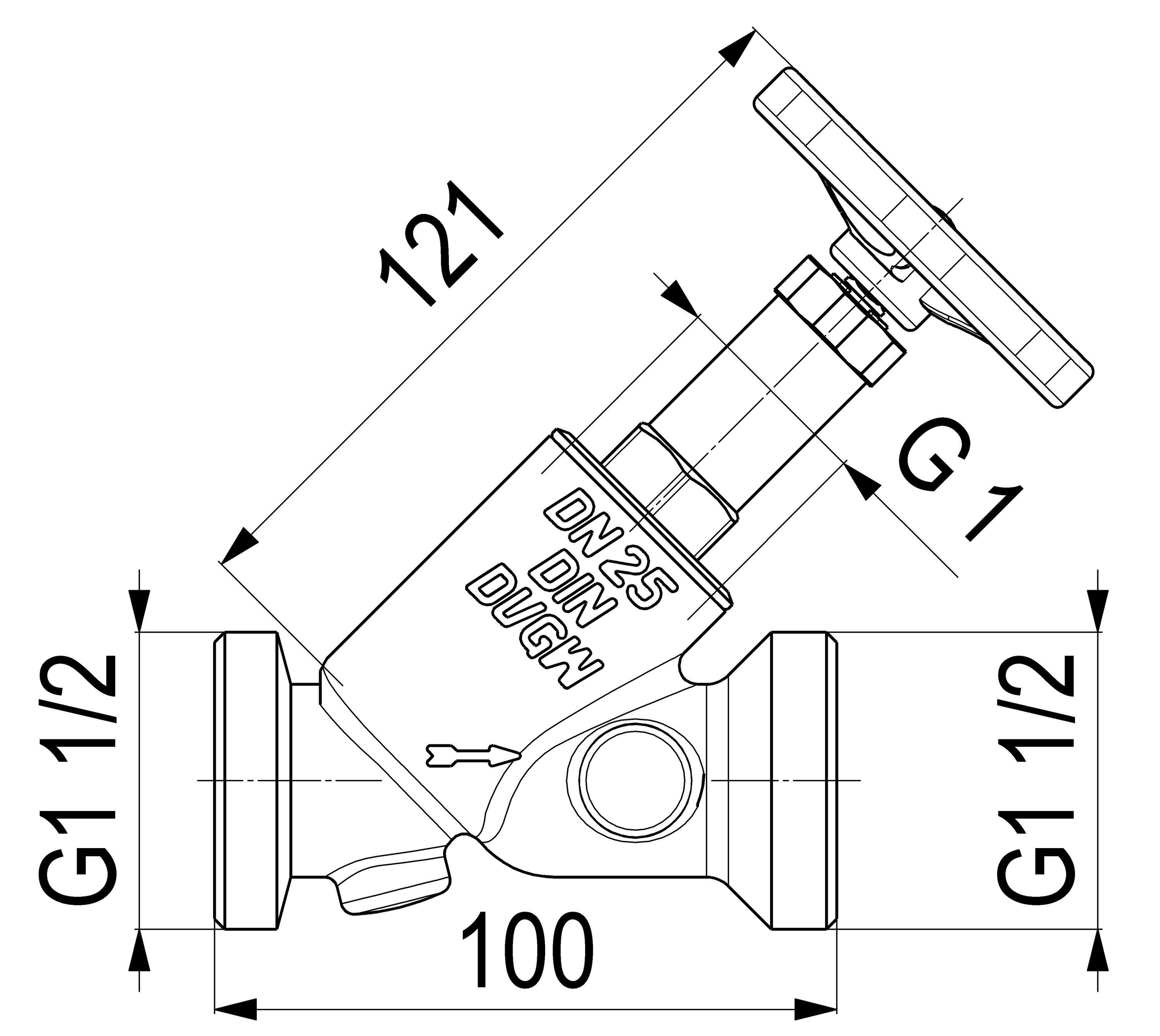 Schlösser Armaturen JS Freistromventil, Aussengew. KST O. ENTL., . ST. SP, N25, G1 1/2, VGW