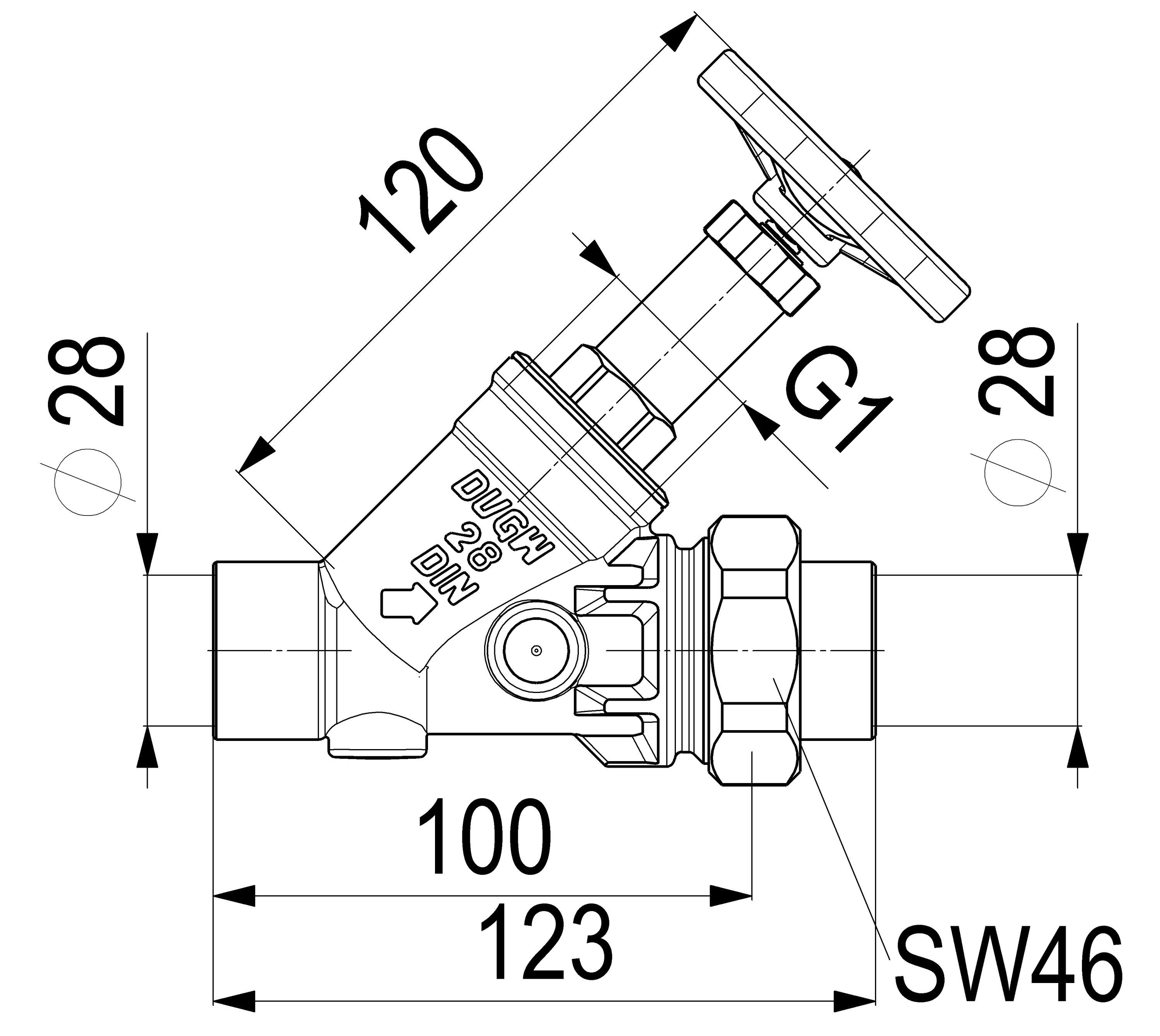 Schlösser Armaturen JS Freistromventil, . Entleerung AG. LOETV, . ST. SP, N25, OET28, VGW