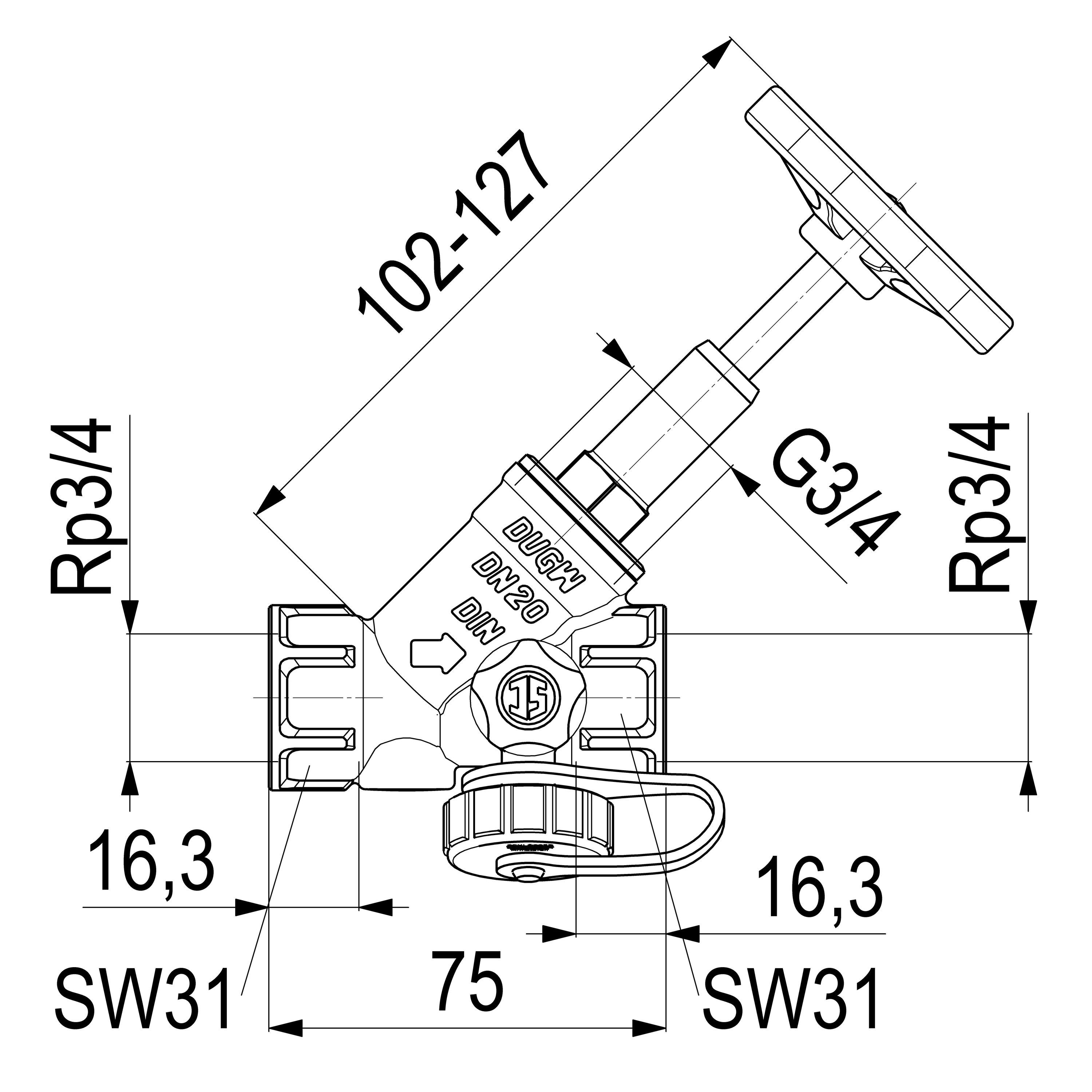 Schlösser Armaturen JS Freistromventil, Muffenanschl. M.E., T. SP., N20,3/4", R-MS, VGW