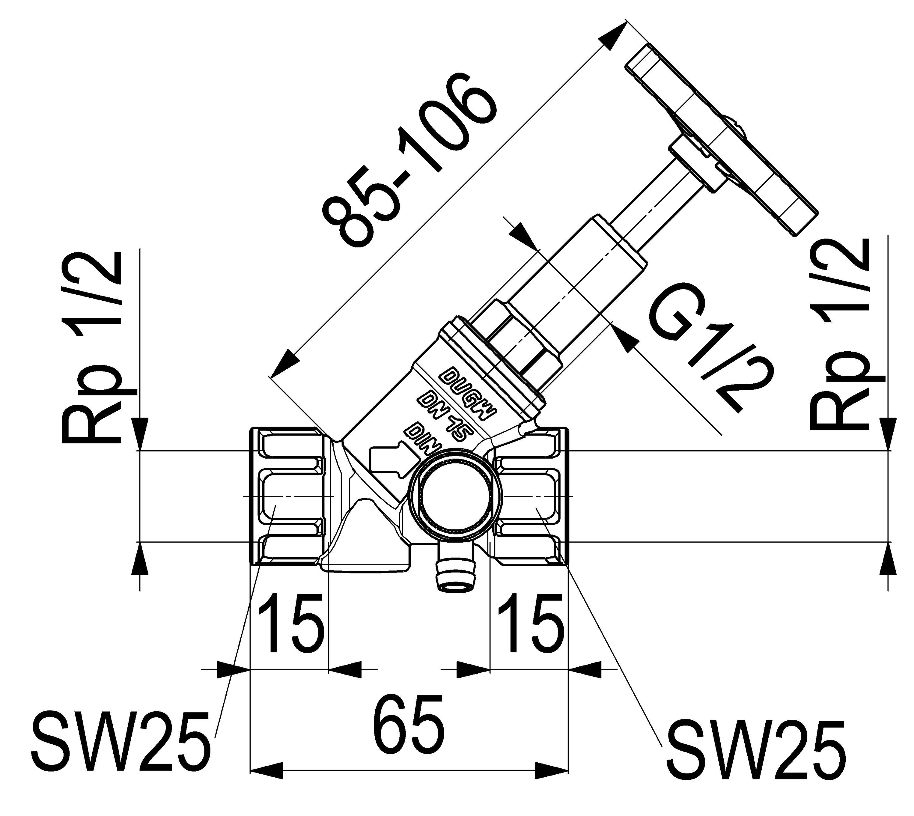 Schlösser Armaturen JS Freistromventil, Muffenanschl. M. ENTL., T. SP., N15, G 1/2", VGW