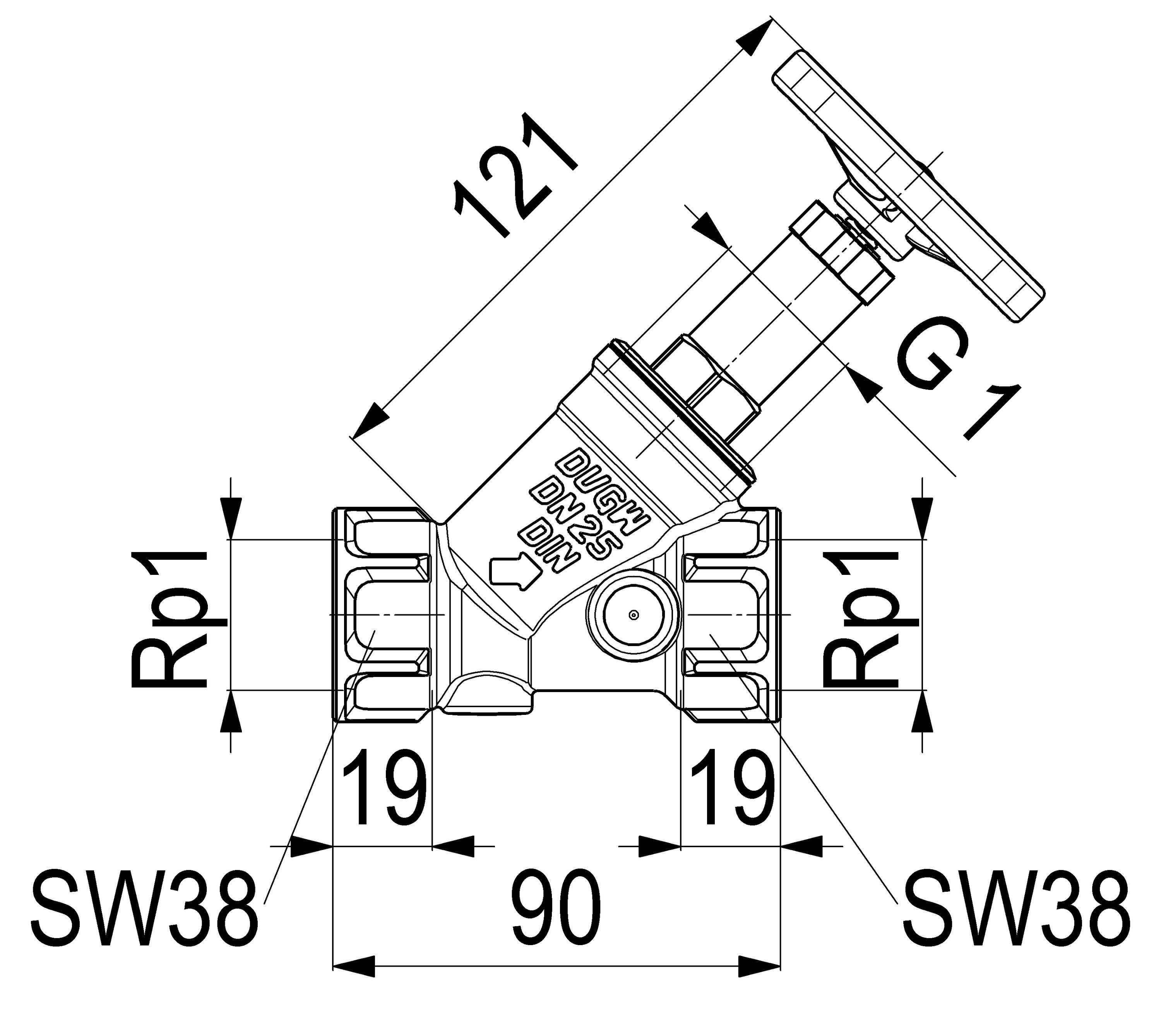 Schlösser Armaturen JS Freistromventil, Muffenanschl. O. ENTL., . ST. SP., N25, G 1", VGW