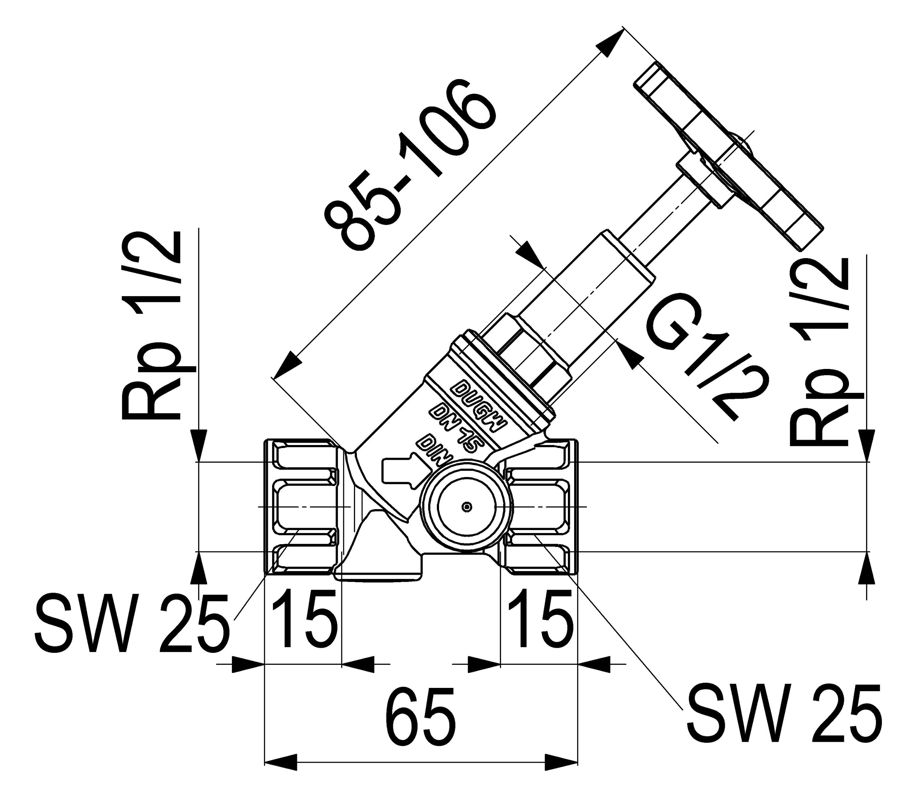 Schlösser Armaturen JS Freistromventil, Muffenanschl. O. ENTL., T. SP., N15, G 1/2", VGW