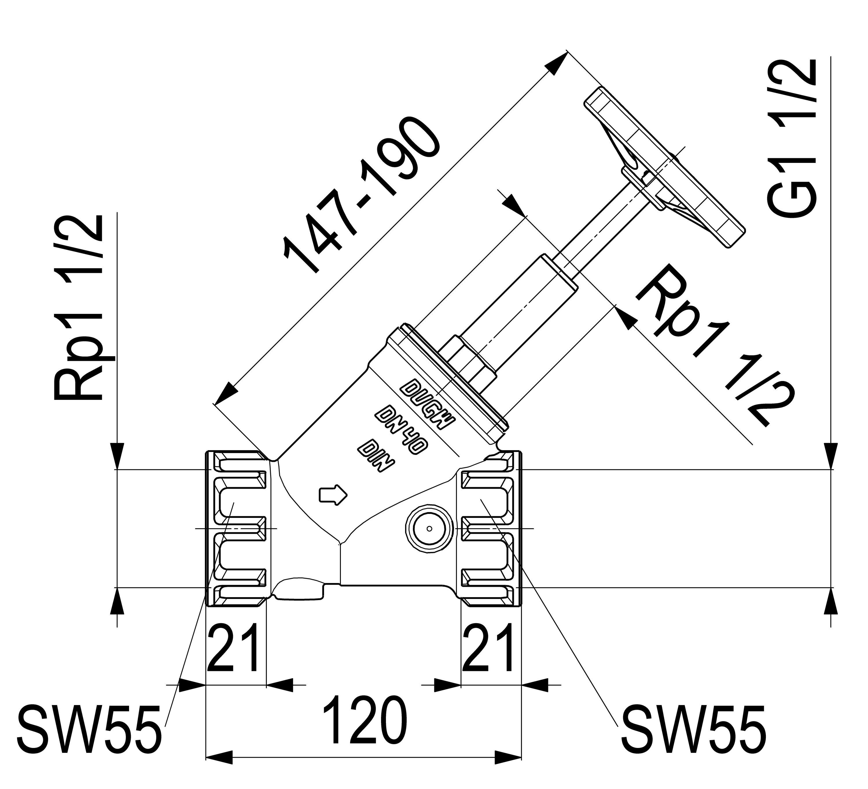 Schlösser Armaturen JS Freistromventil, Muffenanschl. O. ENTL., T. SP., N40, G1 1/2", VGW