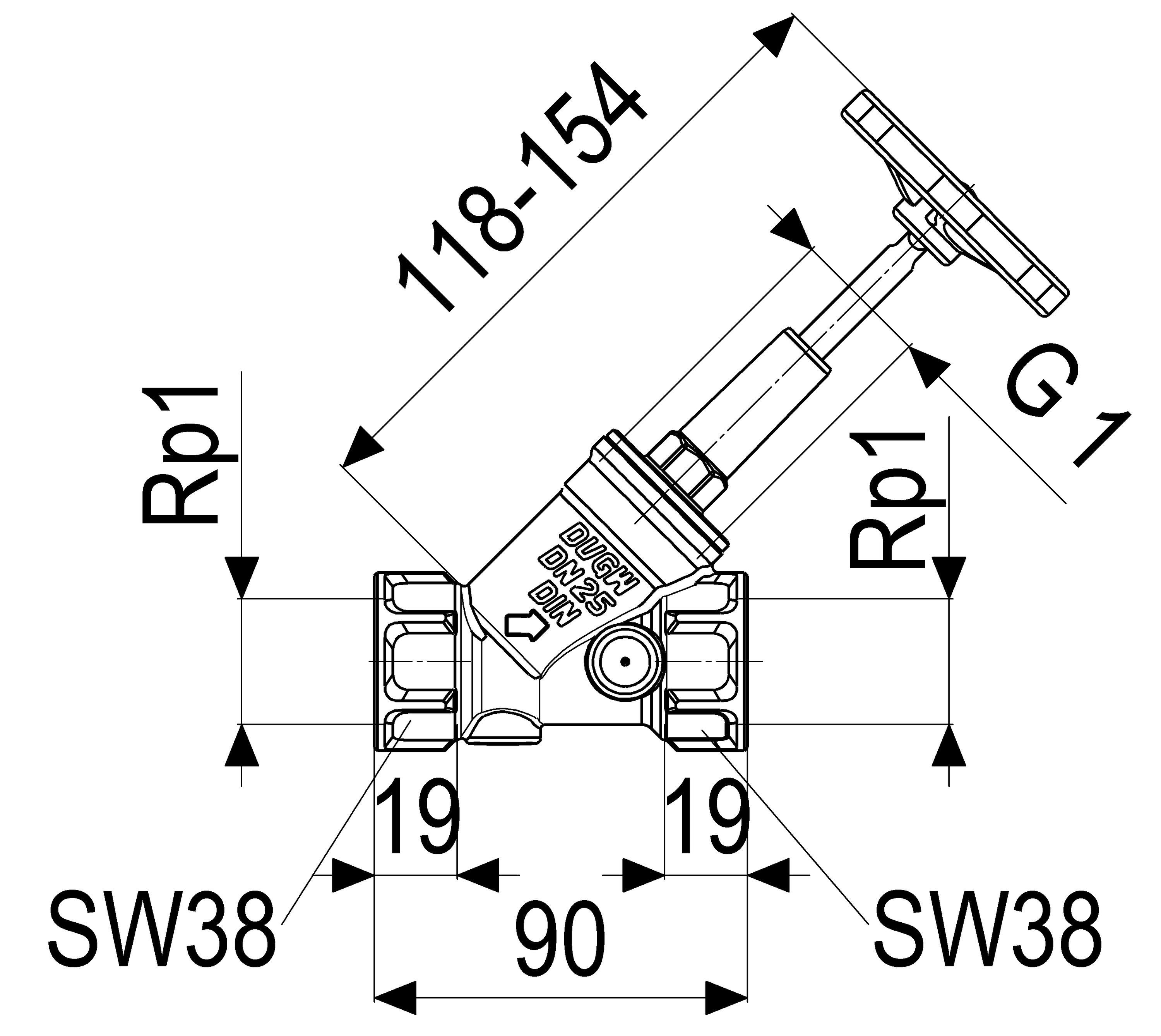Schlösser Armaturen JS Freistromventil, Muffenanschl. O. ENTL., TEIG. SP., N25, G 1", VGW