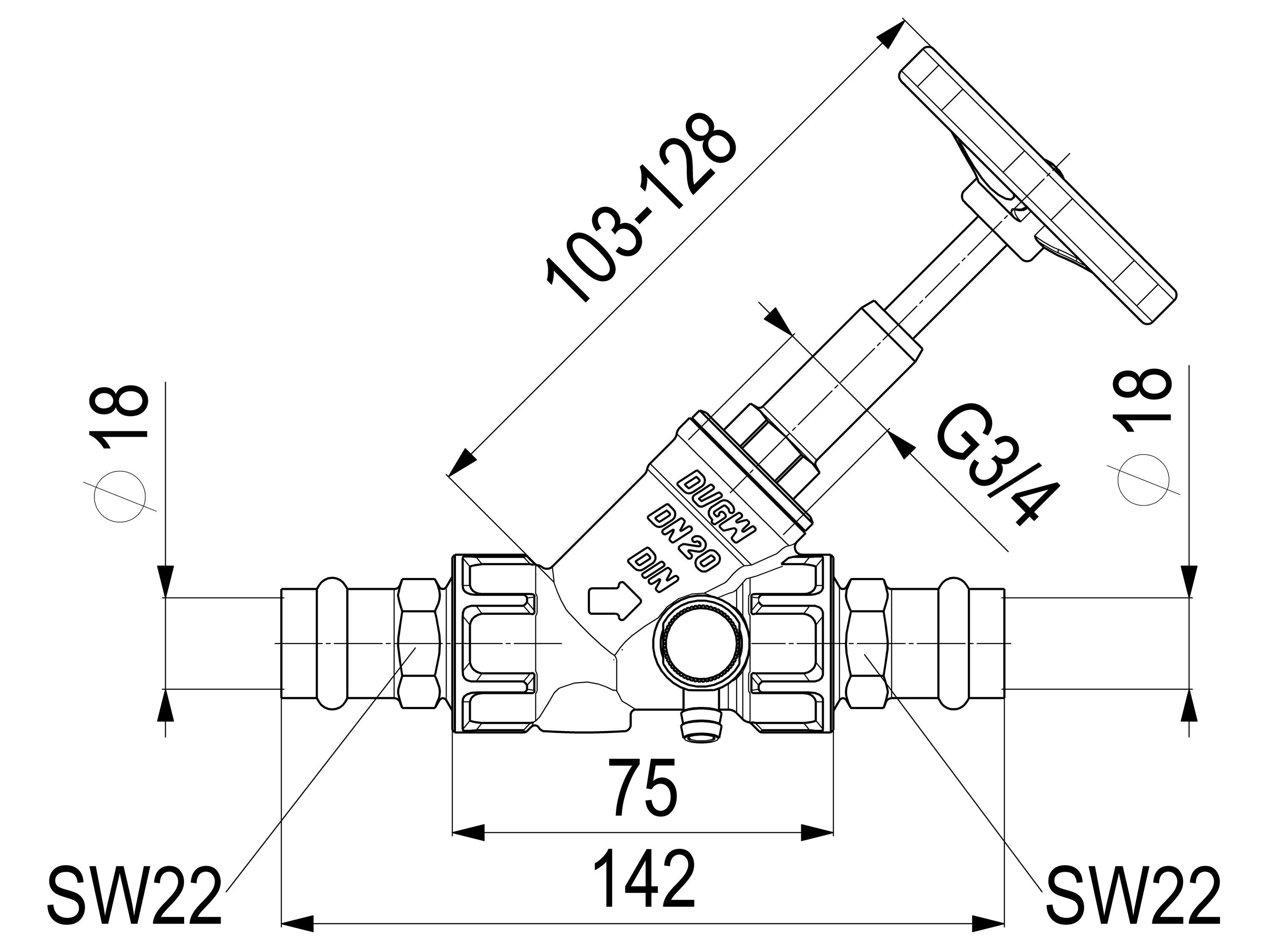Schlösser Armaturen JS Freistromventil, Ressanschl. IG M. ENTL., T. SP., N20, RESS 18, VGW