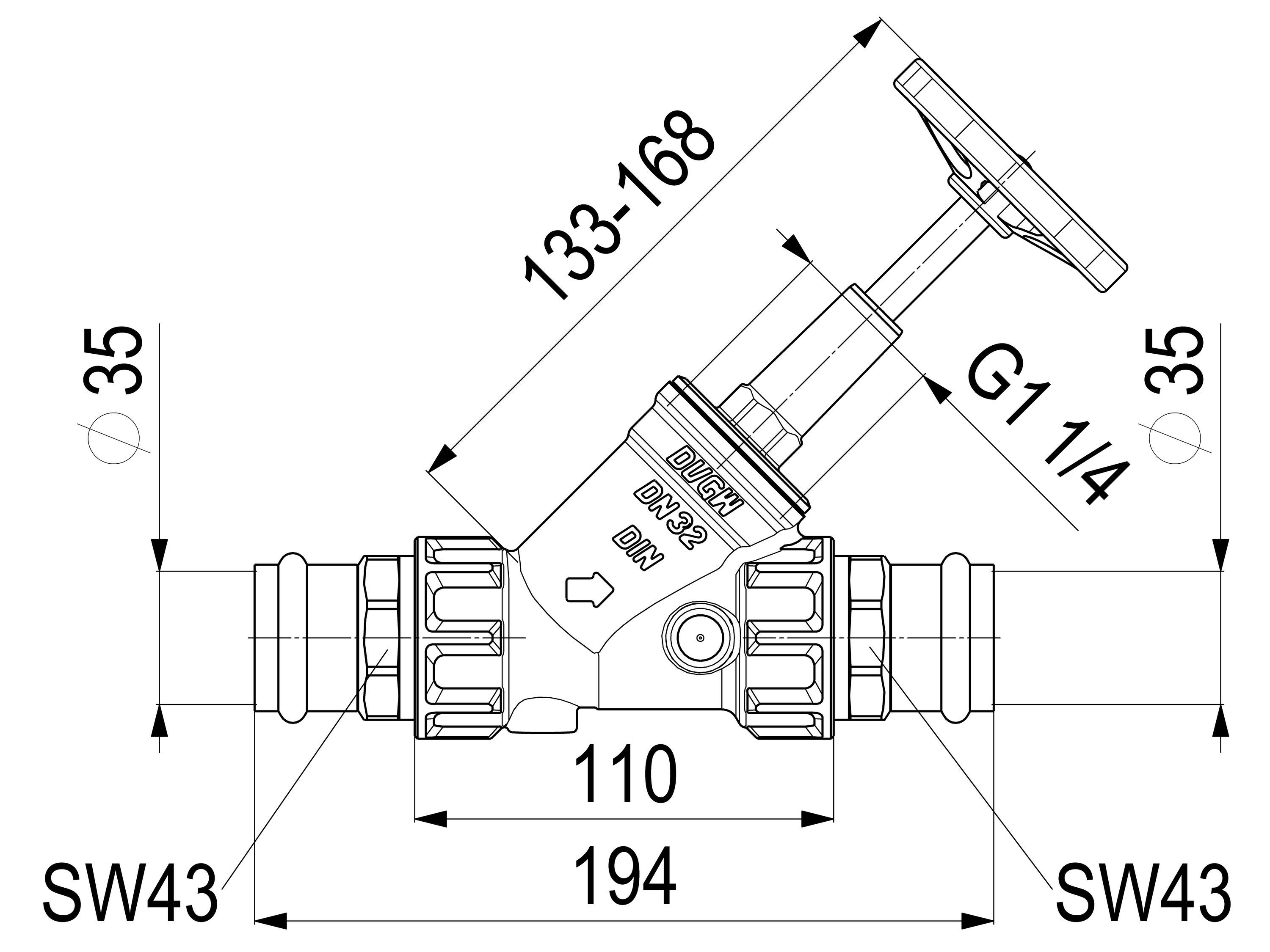 Schlösser Armaturen JS Freistromventil, Ressanschl. IG O. ENTL., T. SP., N32, RESS 35, VGW