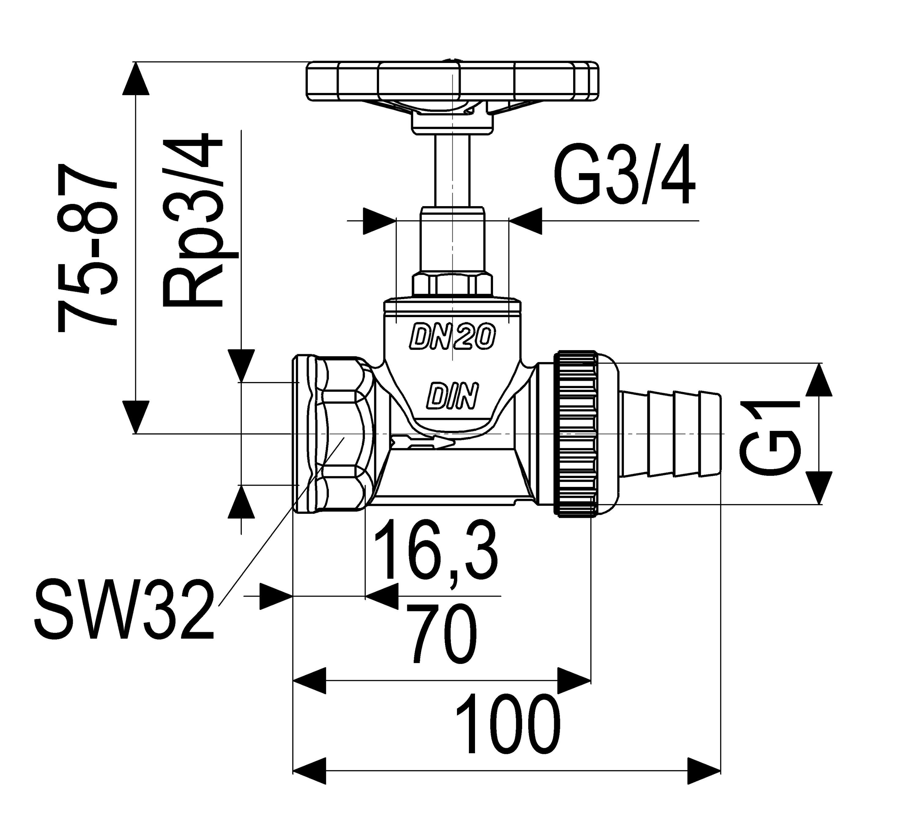 Schlösser Armaturen JS Kesselentleerventil, DN20 Eingang IG 3/4", USGANG SV 1"