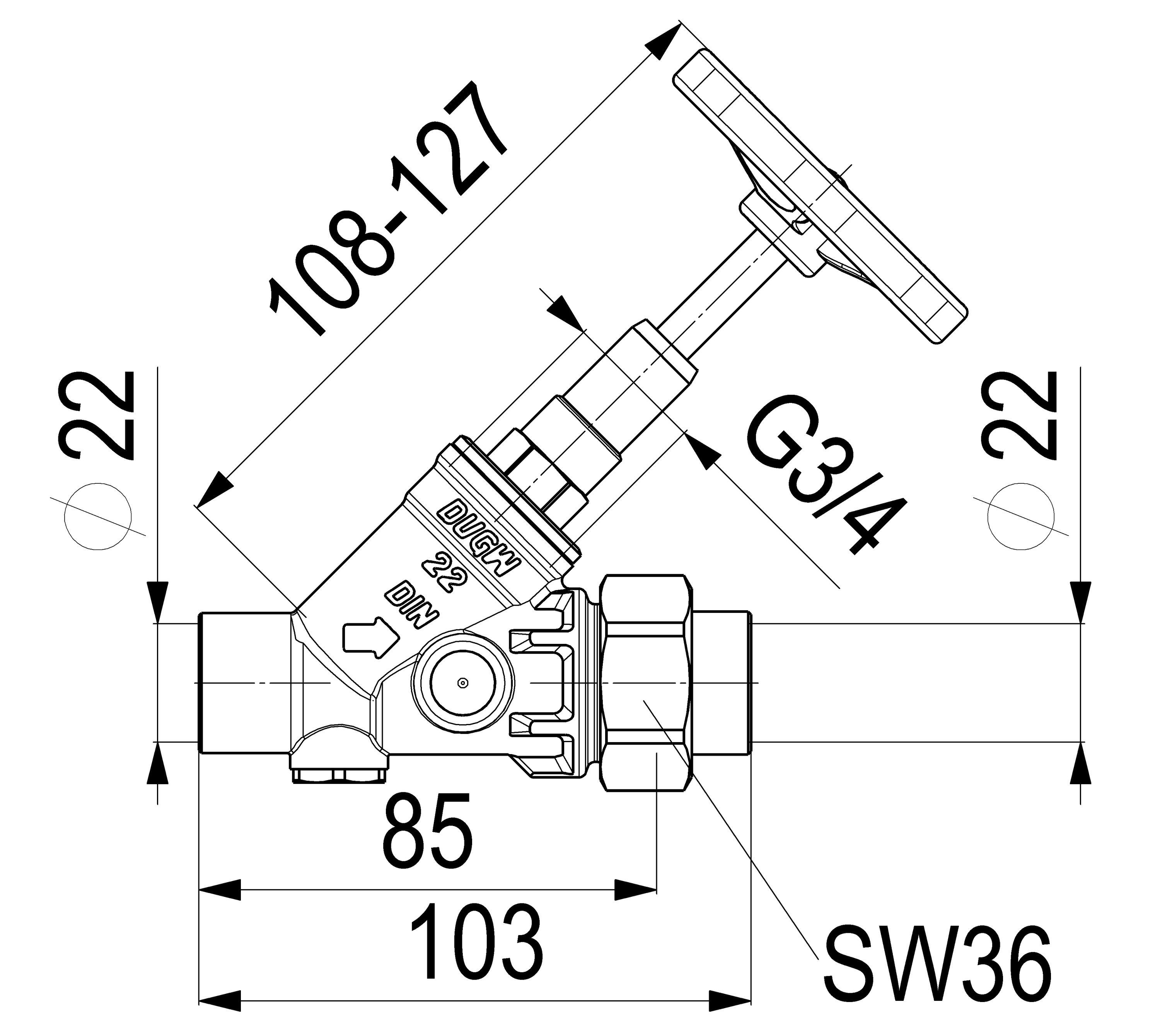 Schlösser Armaturen JS KFR-VENTIL, . ENTL., USG. LOETV. STEIG. Spindel, N20, OET 22, VGW