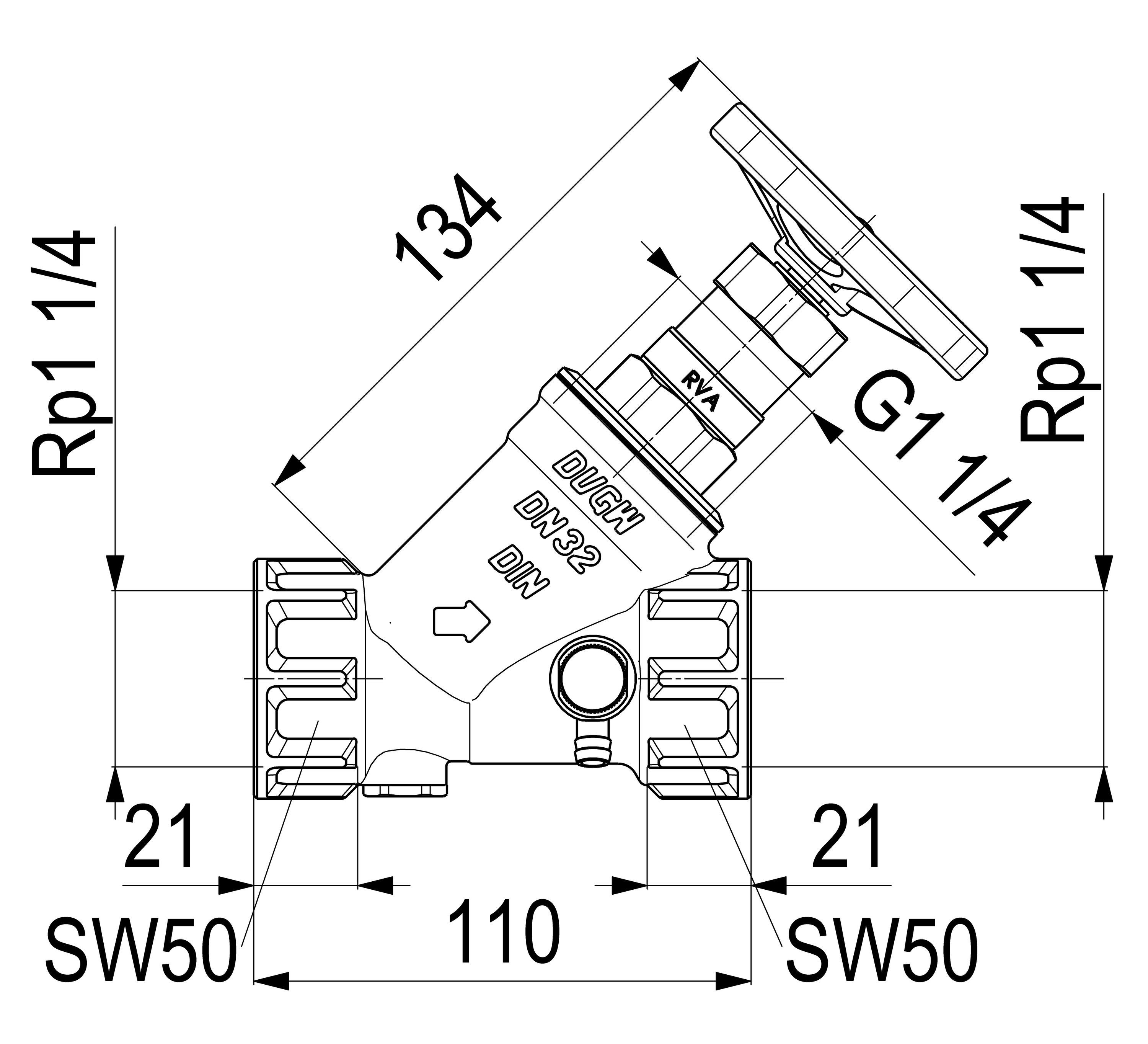 Schlösser Armaturen JS KFR-VENTIL, Muffenanschluss M. ENTL., . ST. SP, N32, G1 1/4", VG