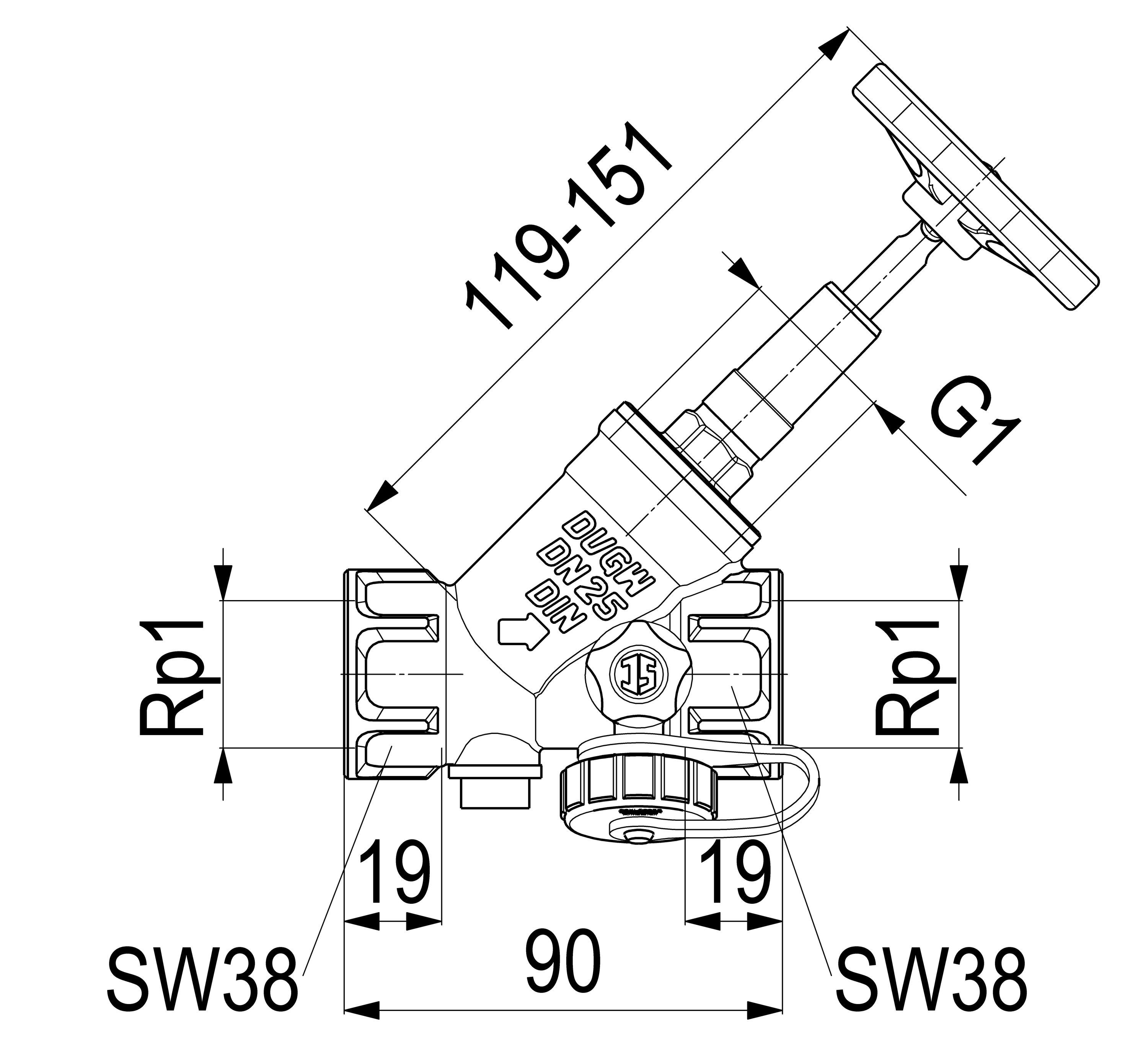 Schlösser Armaturen JS KFR-VENTIL, Muffenanschluss M. ENTL., T. SP., N25,1", R-MS, VGW