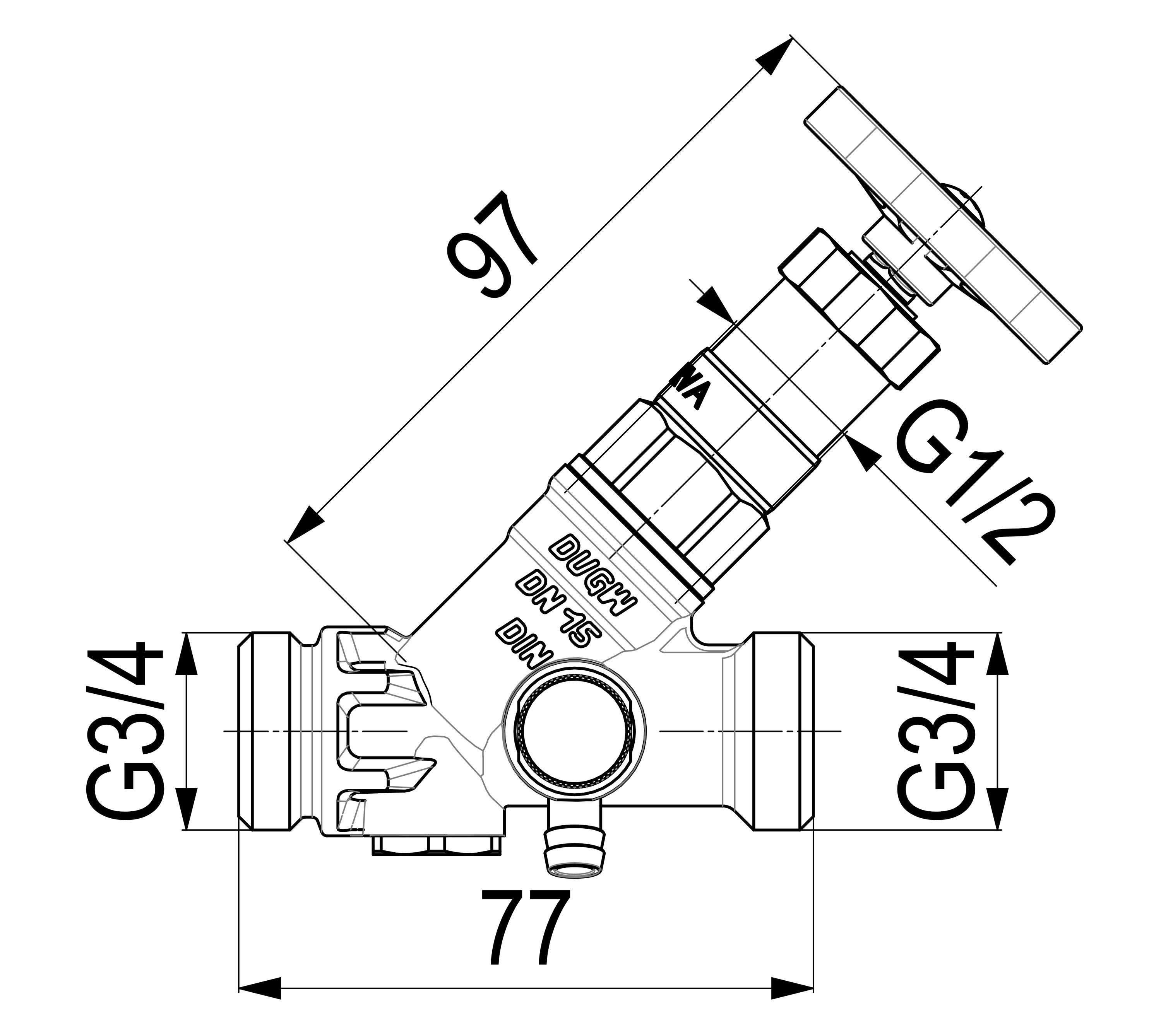 Schlösser Armaturen JS KFR-VENTIL, Ussengewinde MULTI M. ENTL., . ST. SP., N15, G3/4", VGW