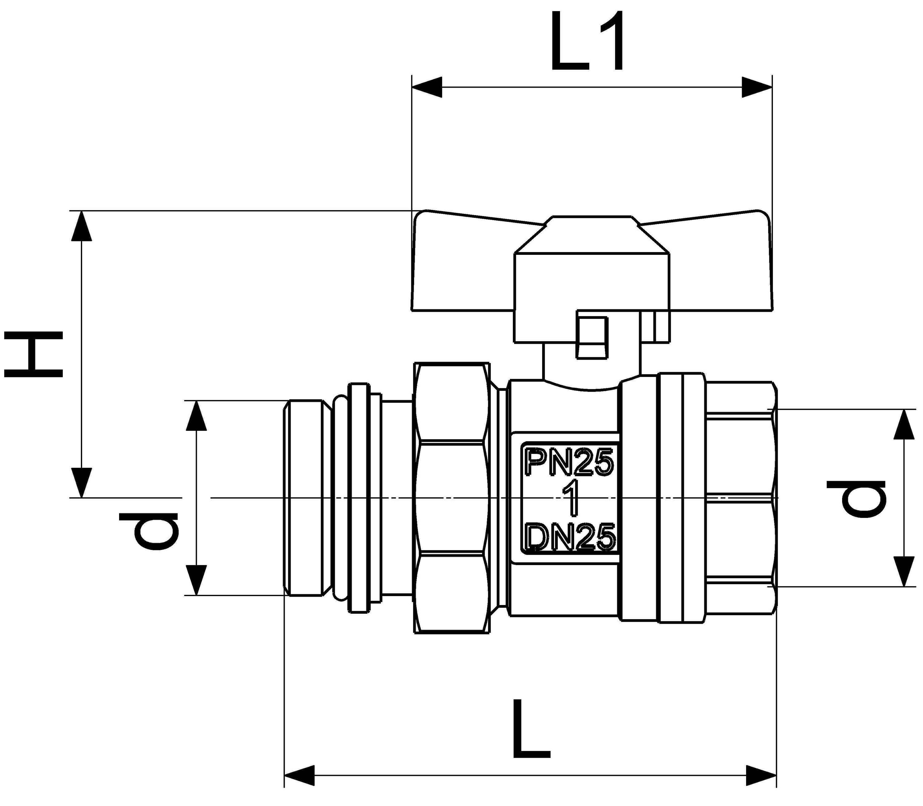 Schlösser Armaturen JS Kugelhahn, . Verschraubung, N20 IGxAG3/4",96MM, LUEG-GR. ROT, ERN
