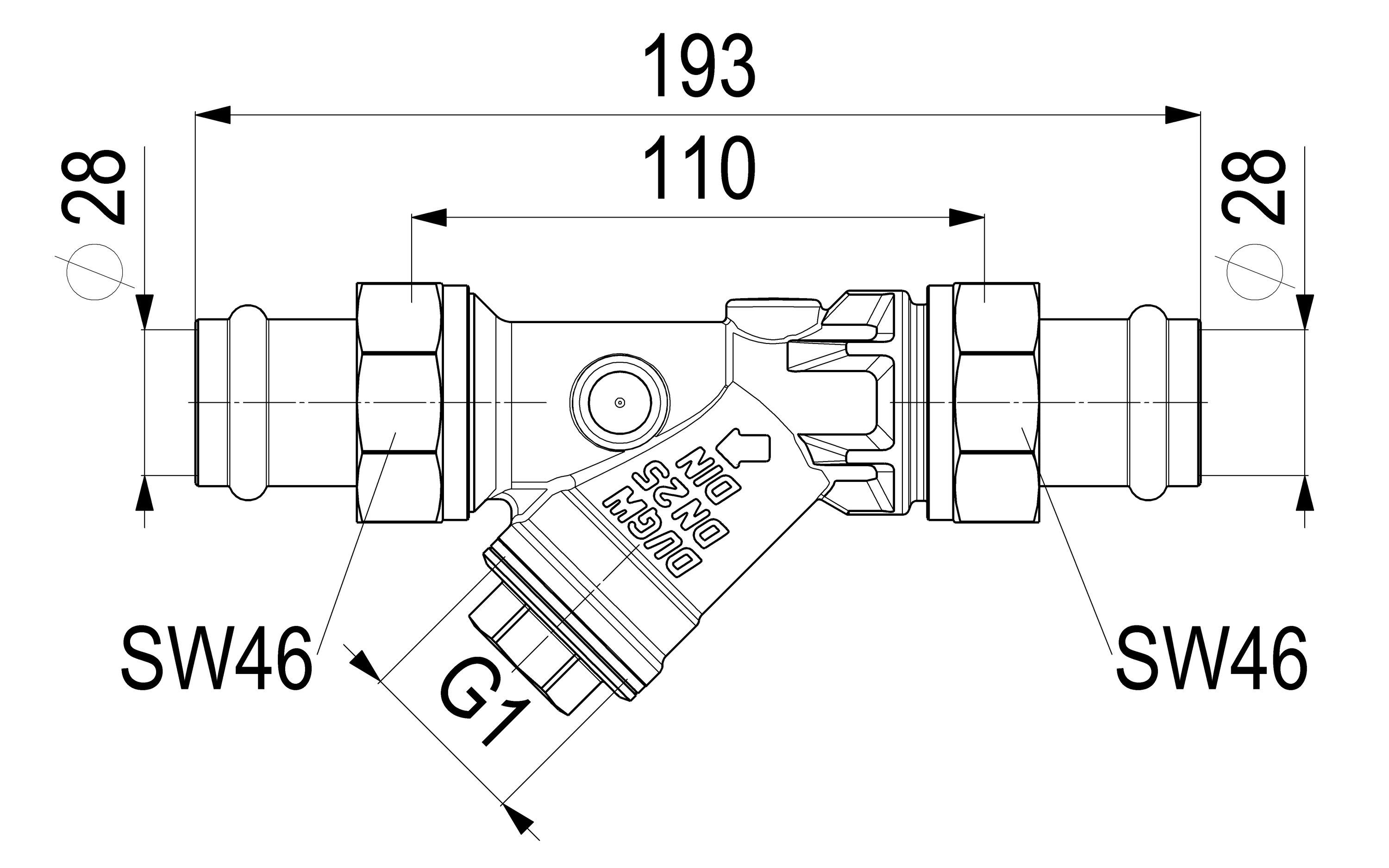 Schlösser Armaturen JS Schmutzfaenger, Pressanschl. AG O. ENTL., N25 PRESS28, IN Gehaeuse