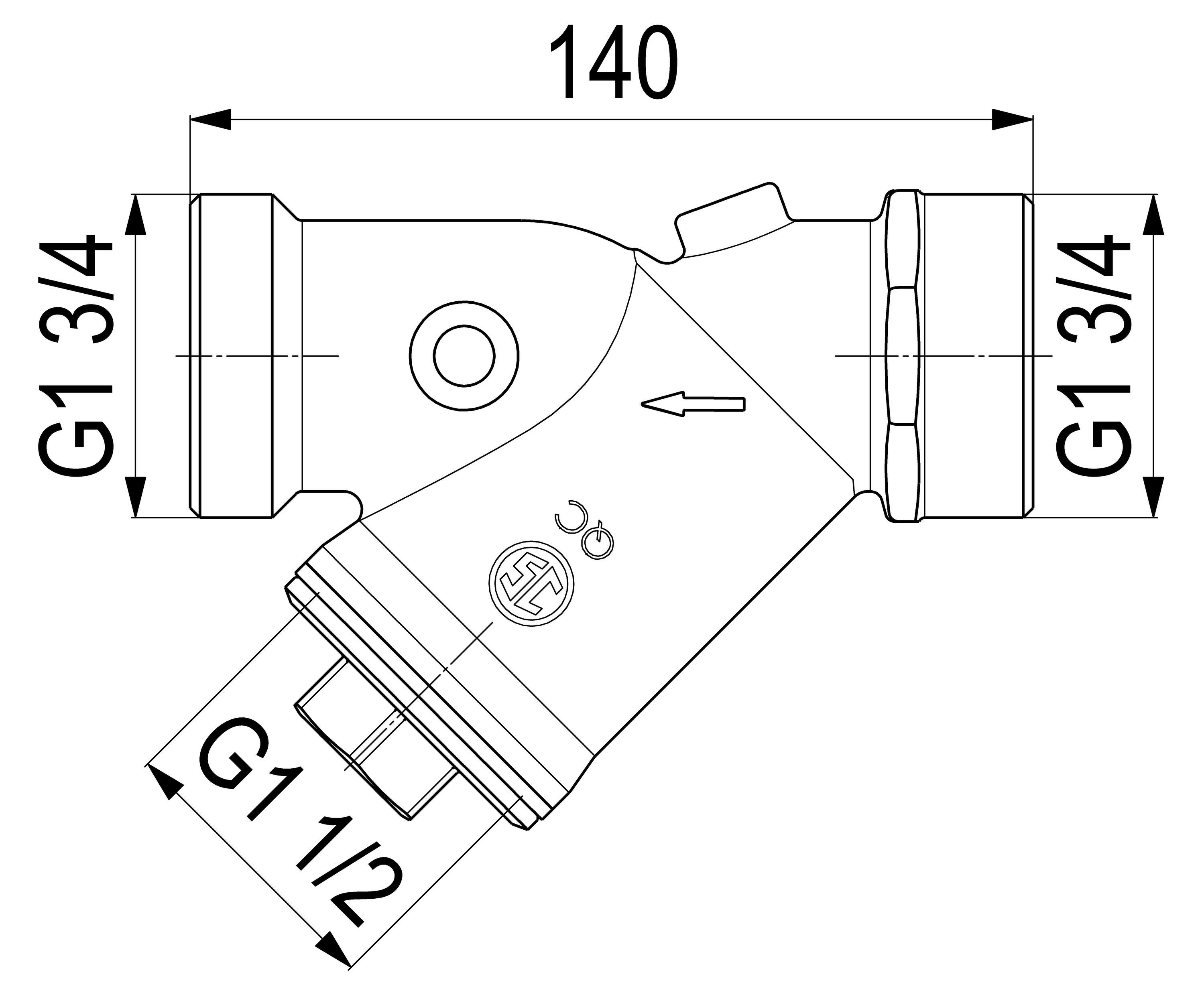 Schlösser Armaturen JS Schmutzfaenger, Ussengew. MULTI O. ENTL., N40, G1 3/4, IN Gehaeuse