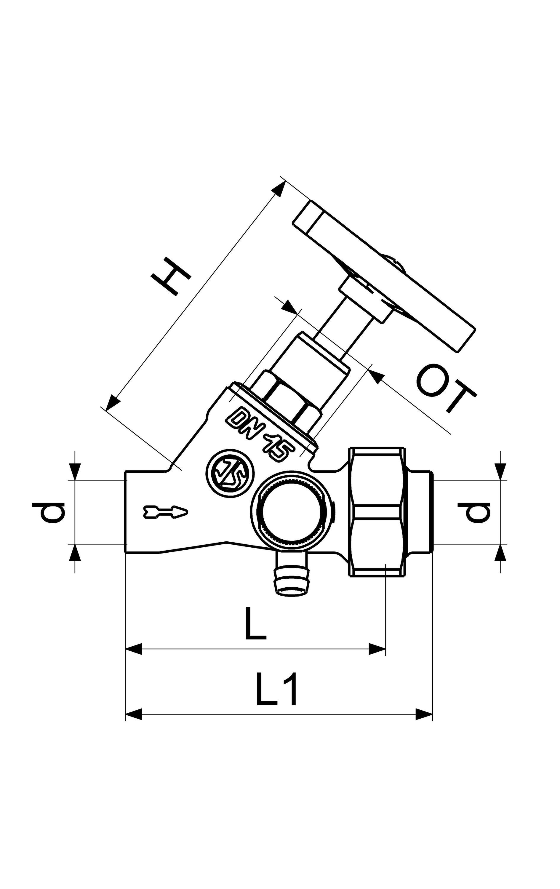 Schlösser Armaturen JS Schraegsitzventil, . Entleerung LOETV. IM AUSG., T. SP. DN40, OET42