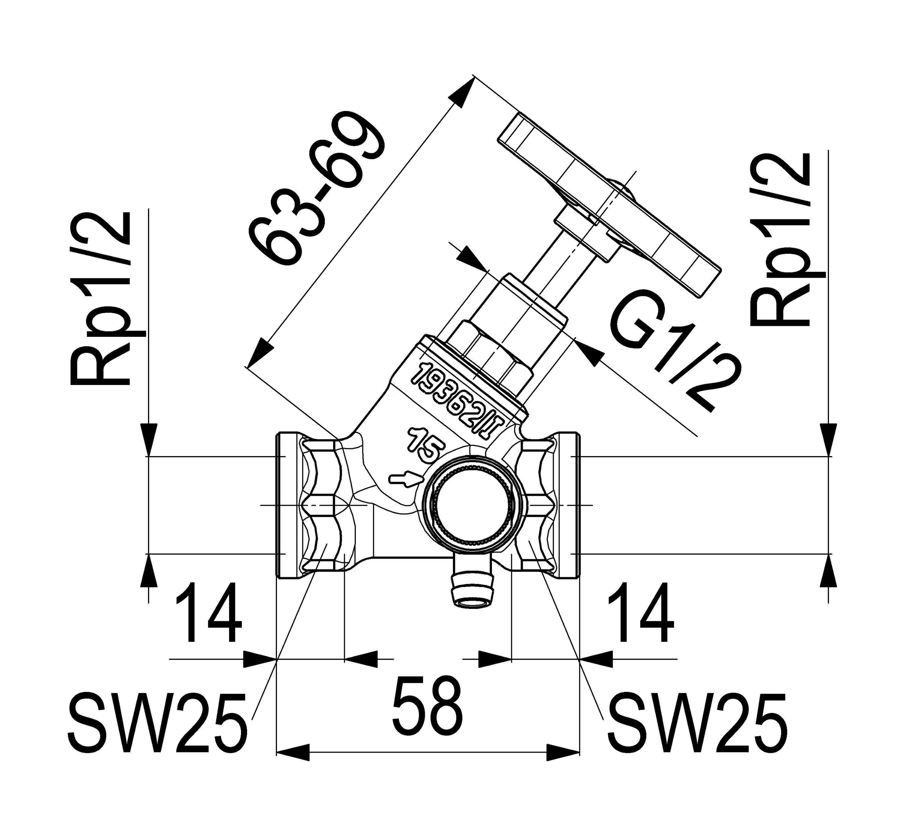 Schlösser Armaturen JS Schraegsitzventil, . Entleerung Steigende Spindel, N15, G 1/2"
