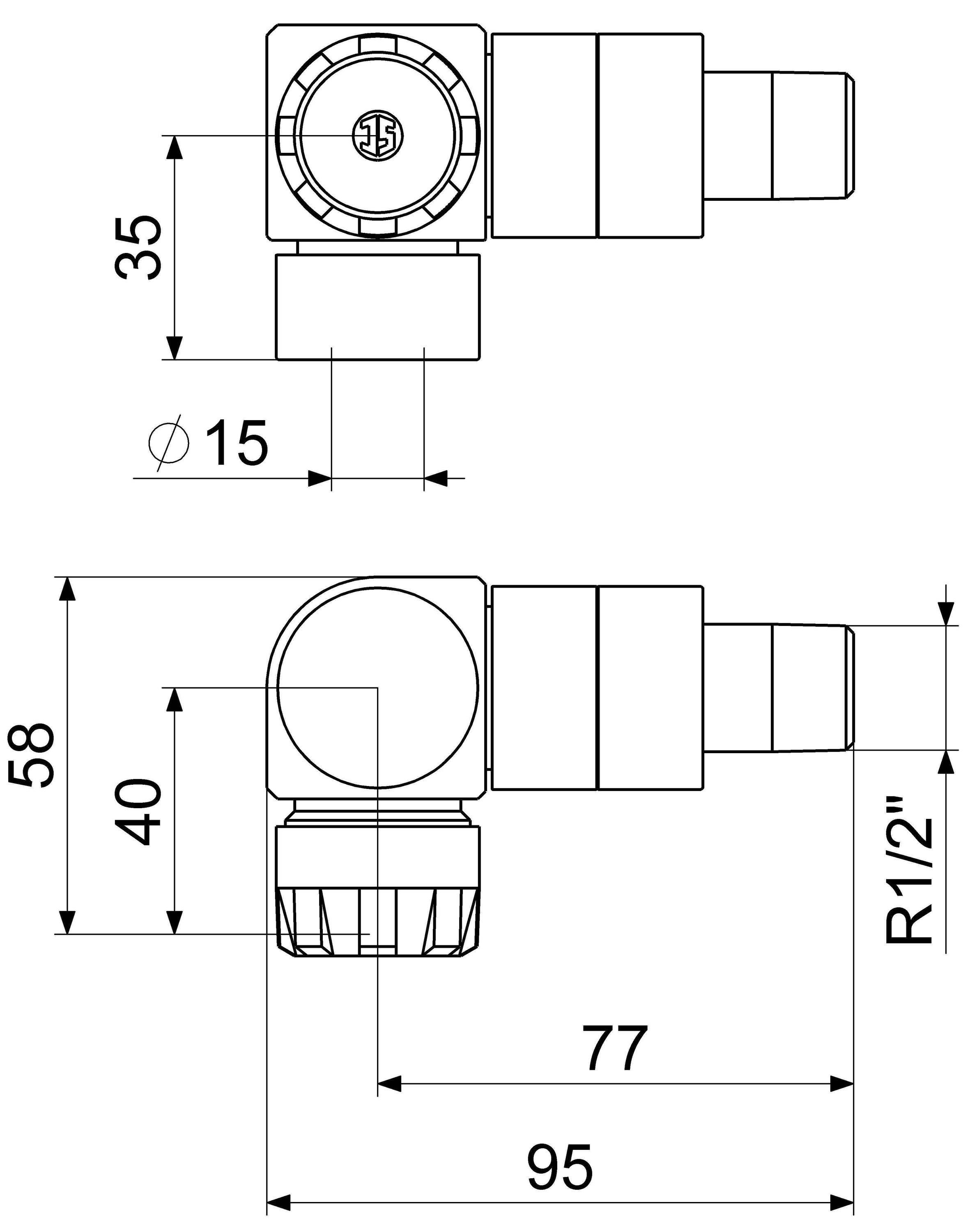 Schlösser Armaturen JS Thermostatventil Winkeleckform ANSCHL. LI, N15,1/2", DELST. DESIGN