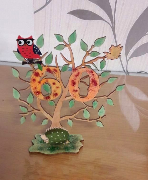 • Jubiläums Baum zum 60 Geburtstag aus Holz, 28 cm, Geschenk, Lebensbaum