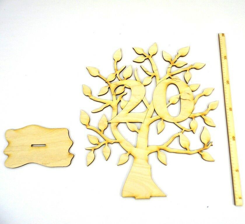 Jubiläums Baum zum 20 Geburtstag aus Holz, 28 cm, Geschenk, Lebensbaum