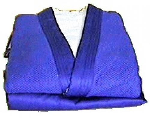 Ein mittelschwerer blauer Judoanzug, mit Jacke, Hose und weißem Gürtel. Material: 100 % Baumwolle. Hose mit Knieverstärkung, Gummibund und zusätzlicher Schnürung. Materialgewicht ca. 550g / m2