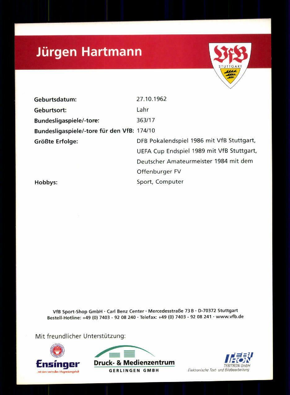 Jürgen Hartmann Autogrammkarte VFB Stuttgart Traditionsmannschaft 2008-09