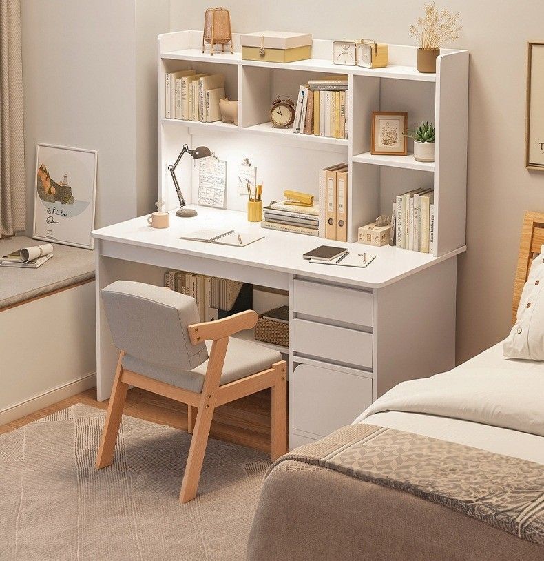 Jugend-Computertisch Loft weiß mit Regal, Regalböden und Schubladen