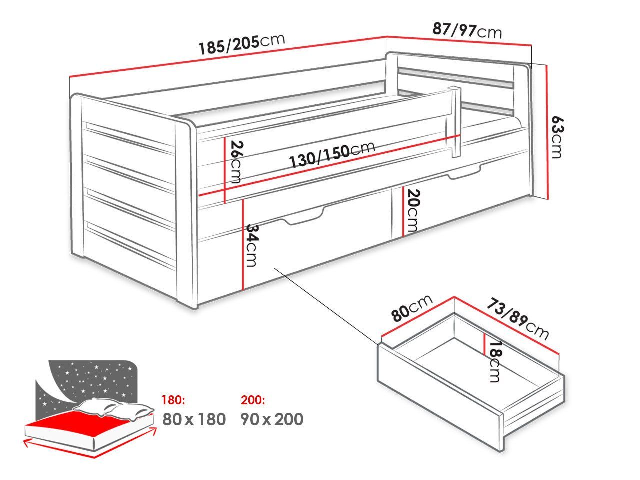 Jugendbett Perkoz 80/90 Kinderbett mit Bettschublade Lattenrost Kinderzimmer