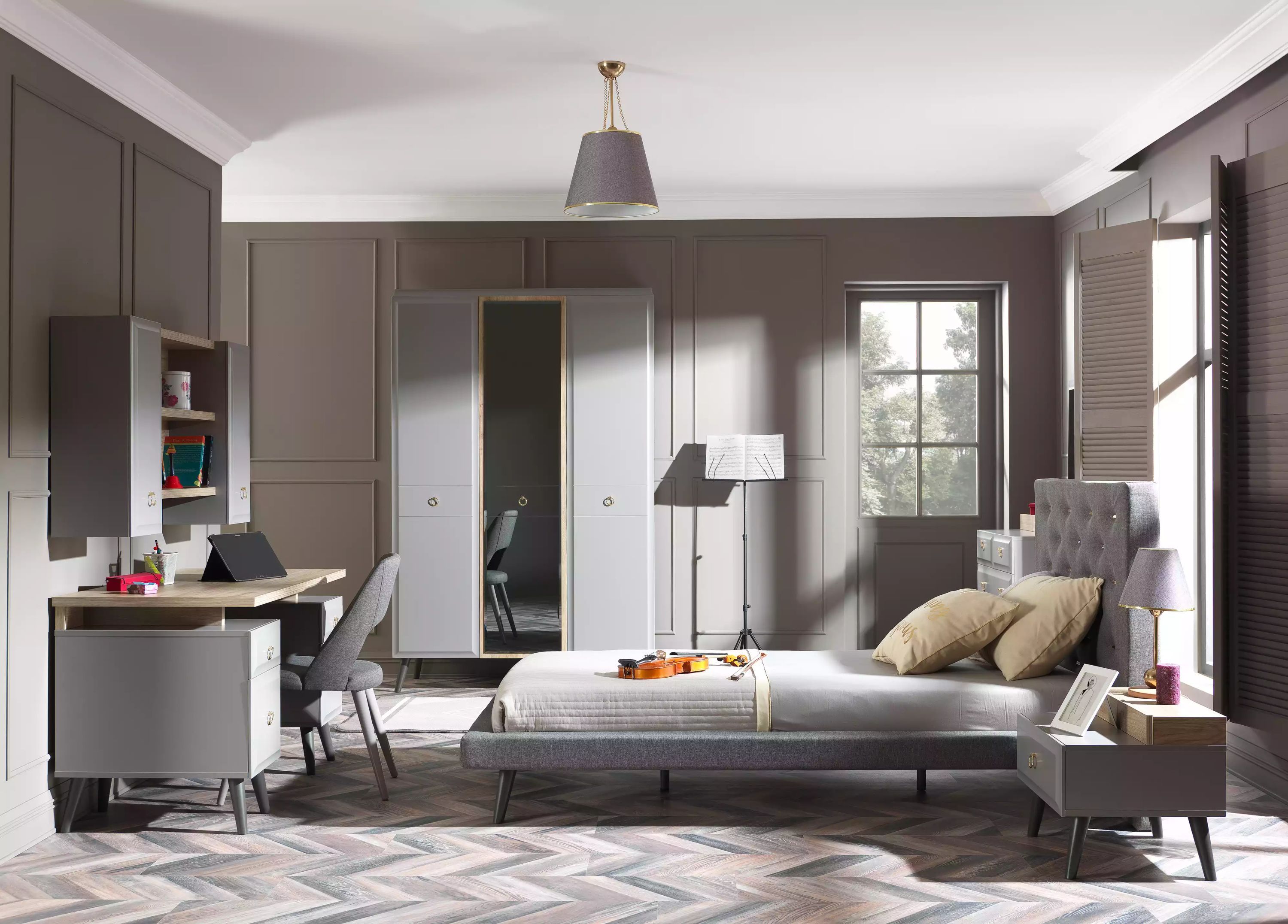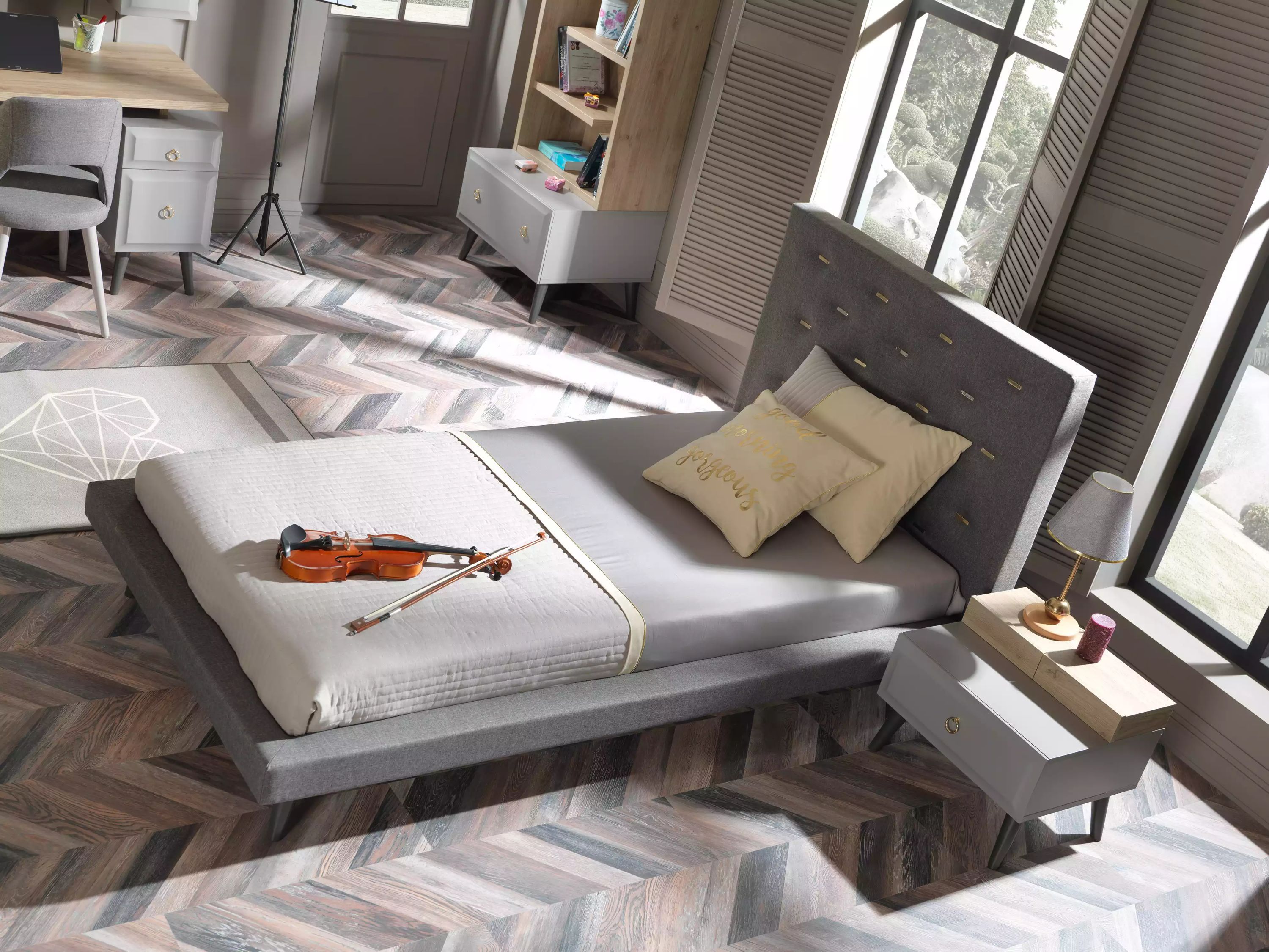Jugendbett Schlafzimmermöbel Holzbett Komplette Bett Grau Set 5tlg
