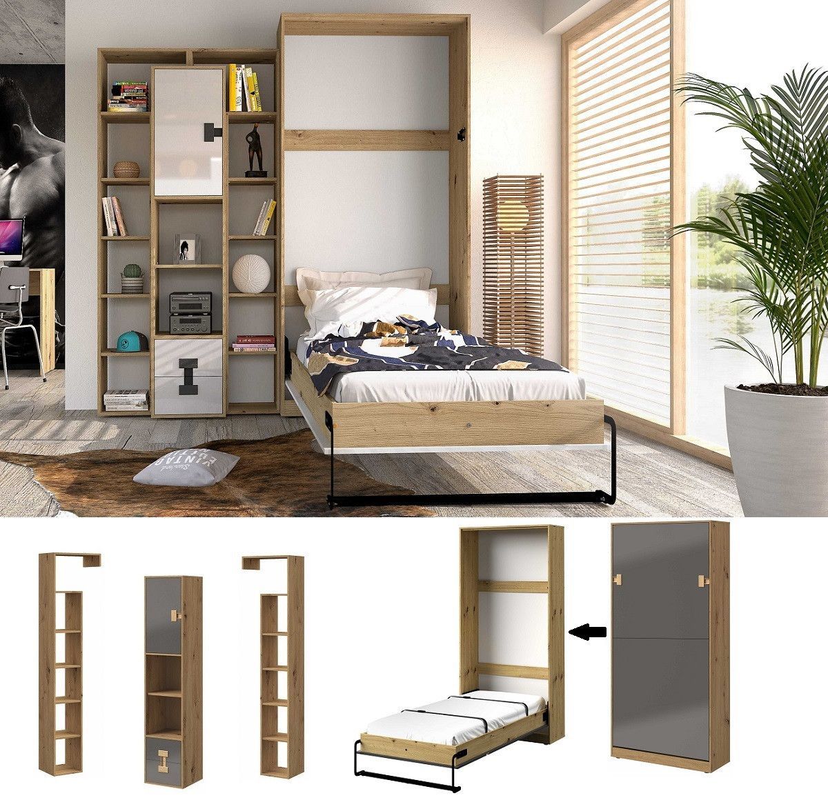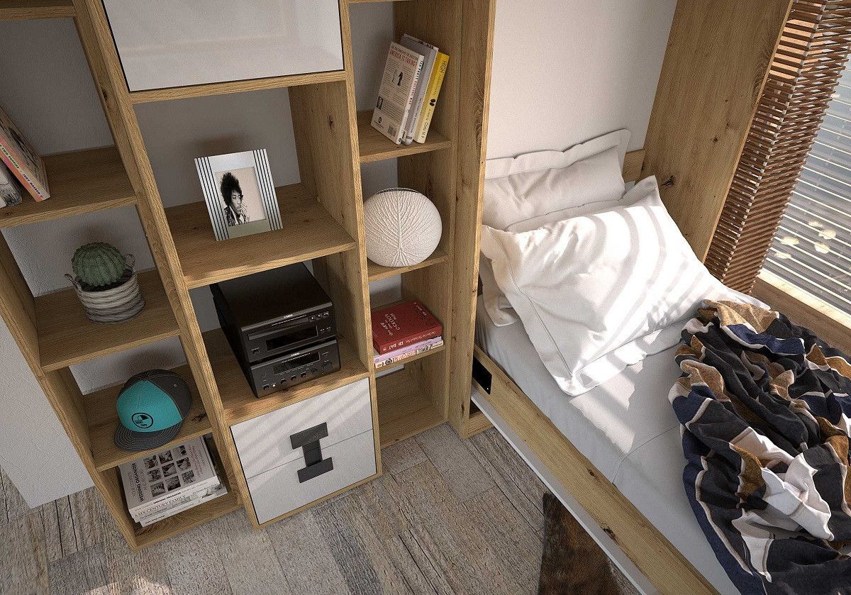 Jugendzimmer komplett 4-tlg DENIS Set F Haben Sie Fragen' Rufen Sie uns an: 02166 - 262 70 72 Lieferumfang: Zum 4-tlg Jugendzimmer Set F gehören : 1. Standregal 40 Denis 2. & 3. Beistellregal für den Schrank Denis - 2 Stück 4. Schrankbett 200x90 vertikal Farbe : - Fronten hochglanz wählbar: Eich