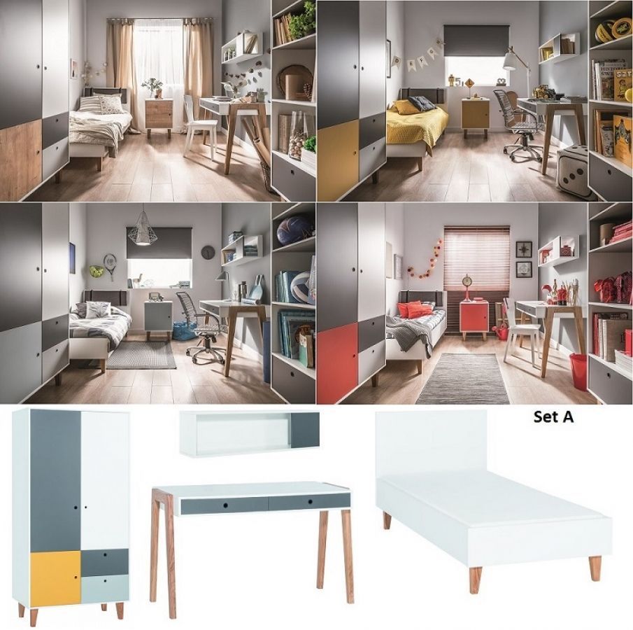 Jugendzimmer Kinderzimmer komplett COLIN Set A Schrank Schreibtisch Bett 90-120 x 200