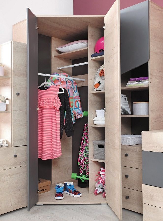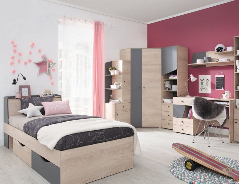 Jugendzimmer Kinderzimmer komplett Davis Set B 6-tlg. Eckchrank, Schreibtisch, Regale