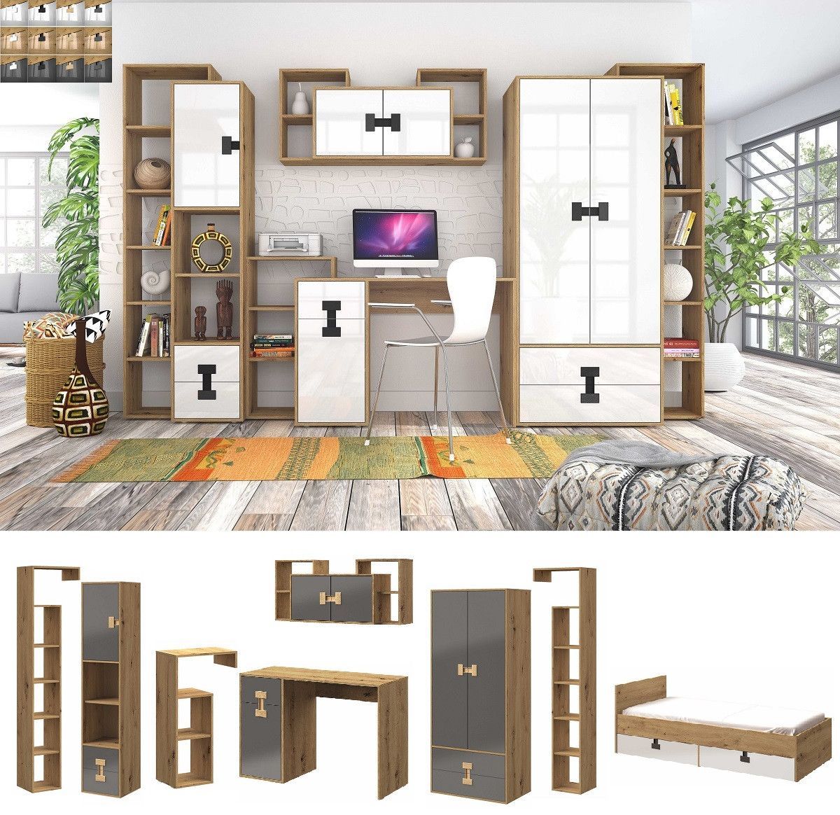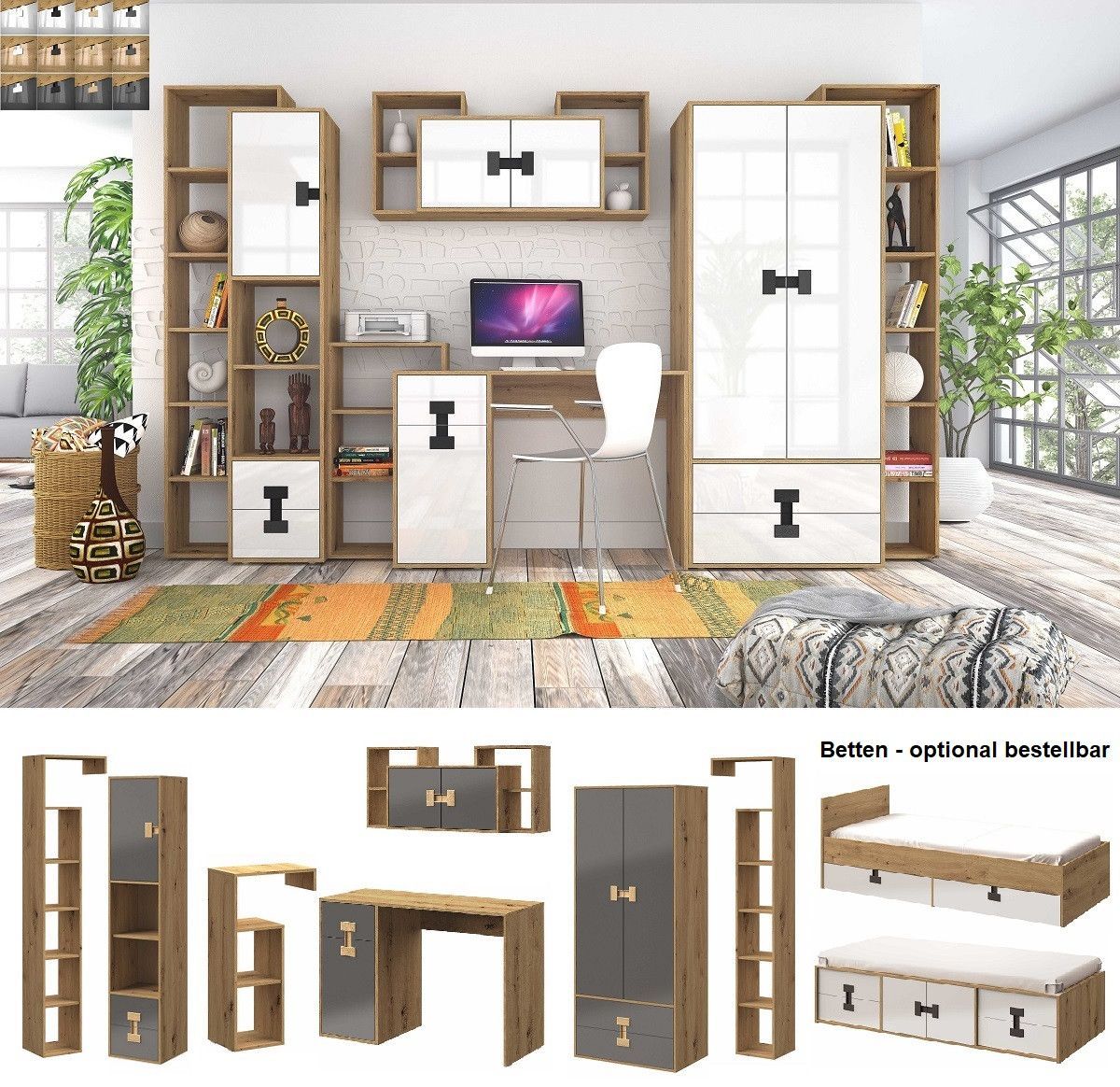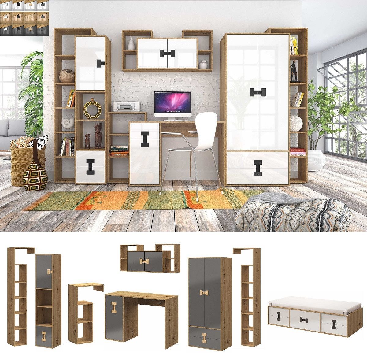 Jugendzimmer Kinderzimmer komplett DENIS Set B Schrank Schreibtisch Regale hochglanz