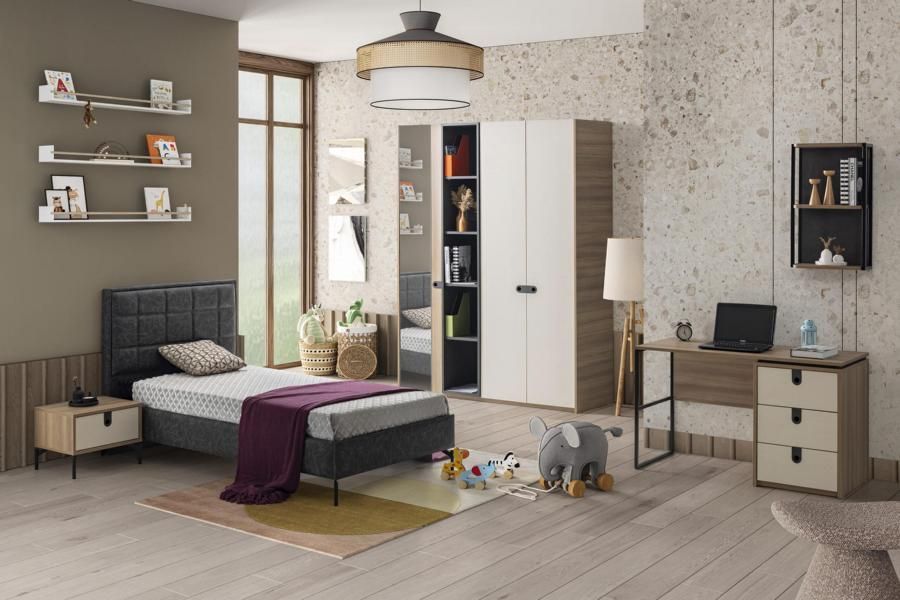 Jugendzimmer Set Bett Schrank Schreibtisch Nachttisch Modernes Design 4-teilig