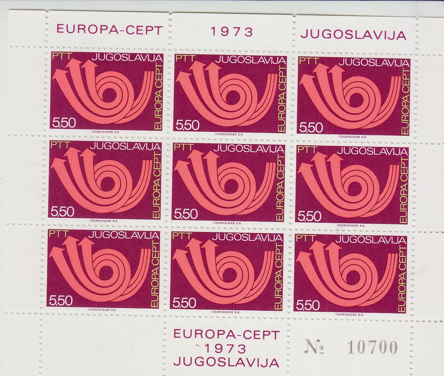 Jugoslavia [1973] MiNr 1508 ( * */mnh ) CEPT Kleinbogen