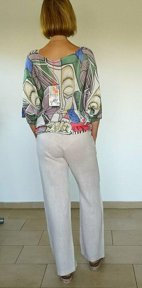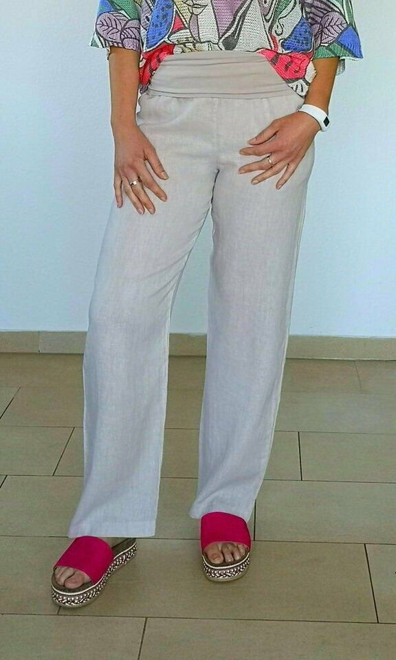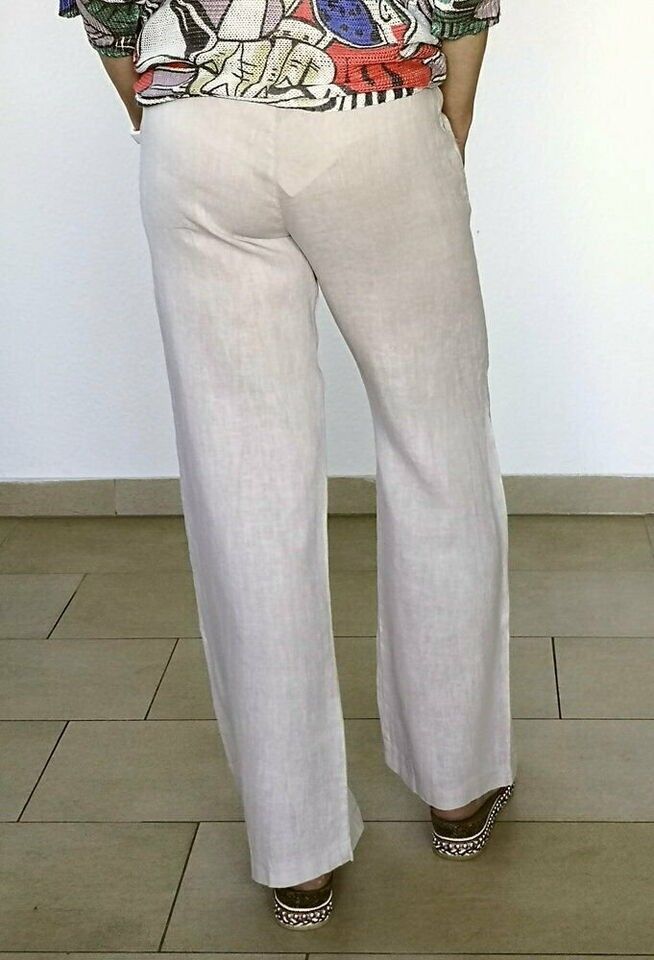 Julia Wang Italy Leinenhose Sommerhose Baumwollbund gerades Bein Beige Gr. L