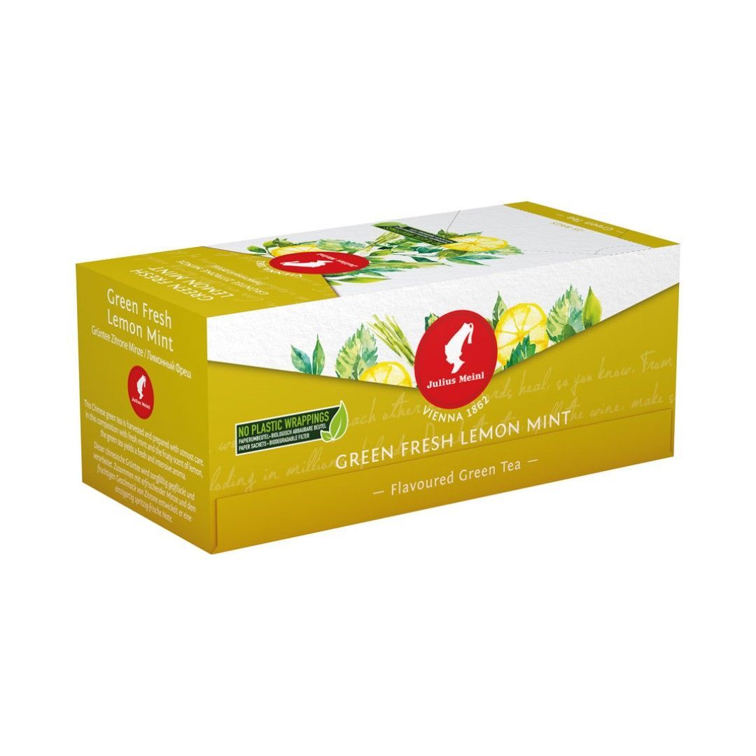 Julius Meinl Tee Green Fresh Lemon Mint, Grüner Tee Zitrone Minze, 25 Teebeutel im Ku