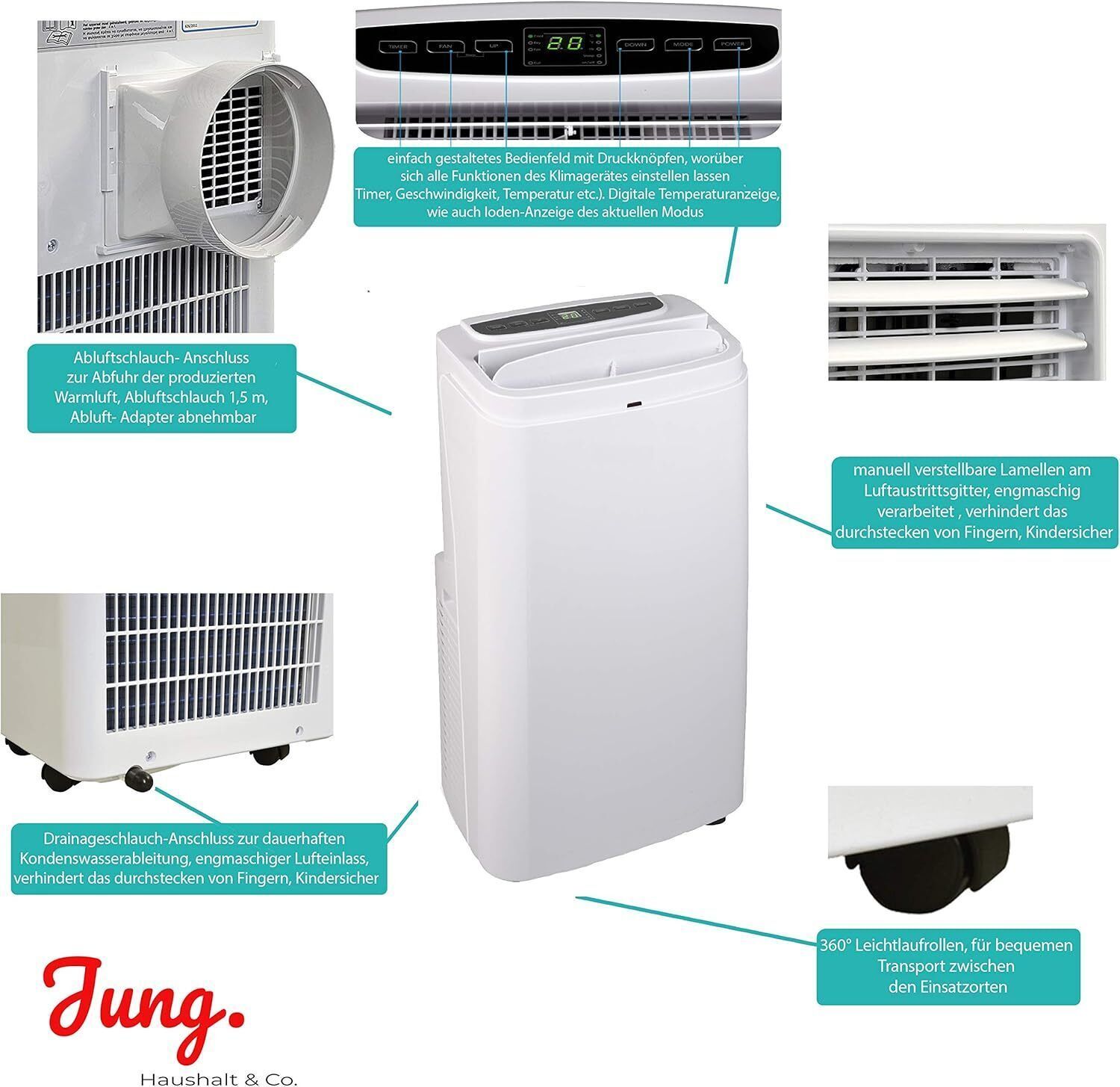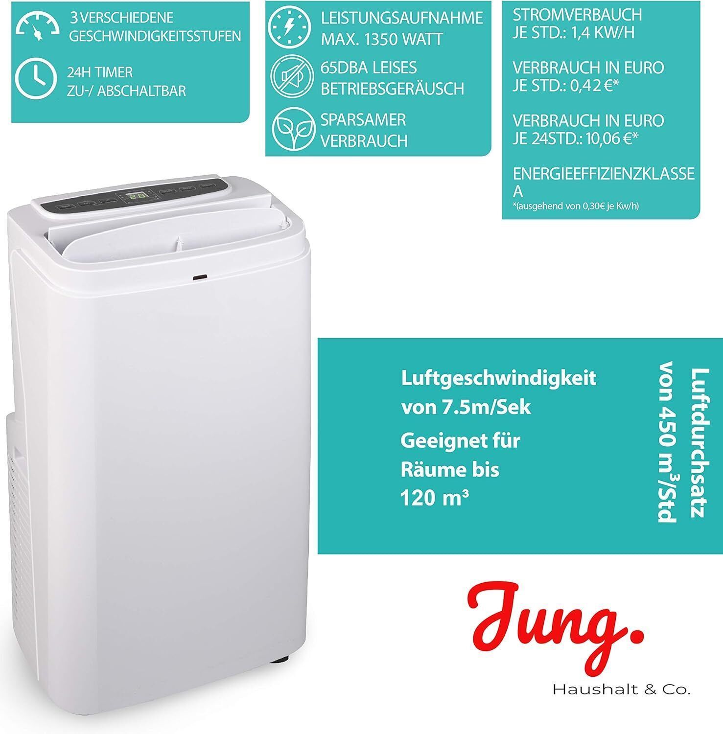 JUNG AIR CAMRY TK06 mobile Klimaanlage mit Fernbedienung, 3,6 KW, 12000BTU