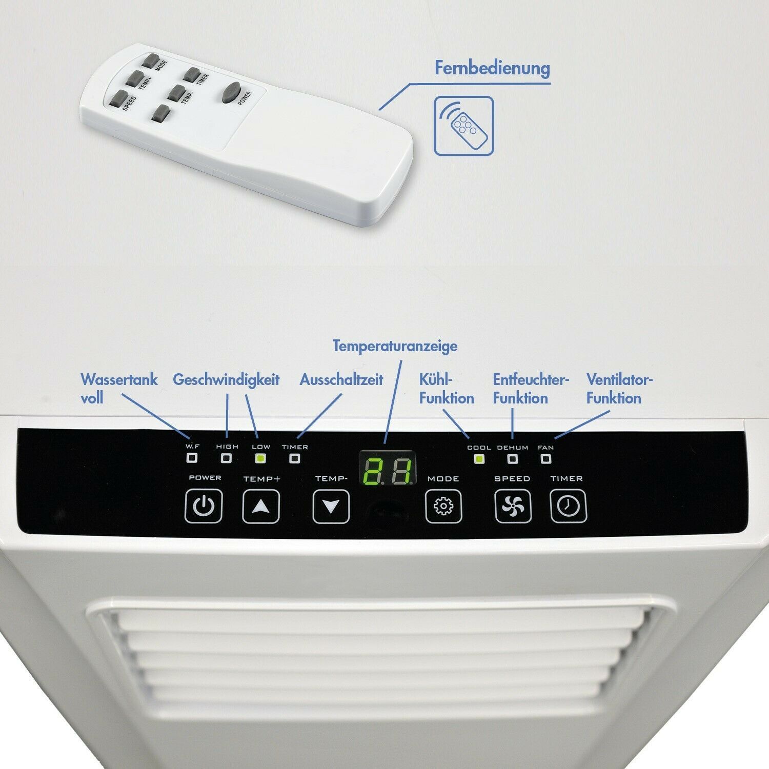 JUNG AIR TV04 mobiles Klimagerät Fernbedienung, 2,6KW Klimaanlage Klima mobil