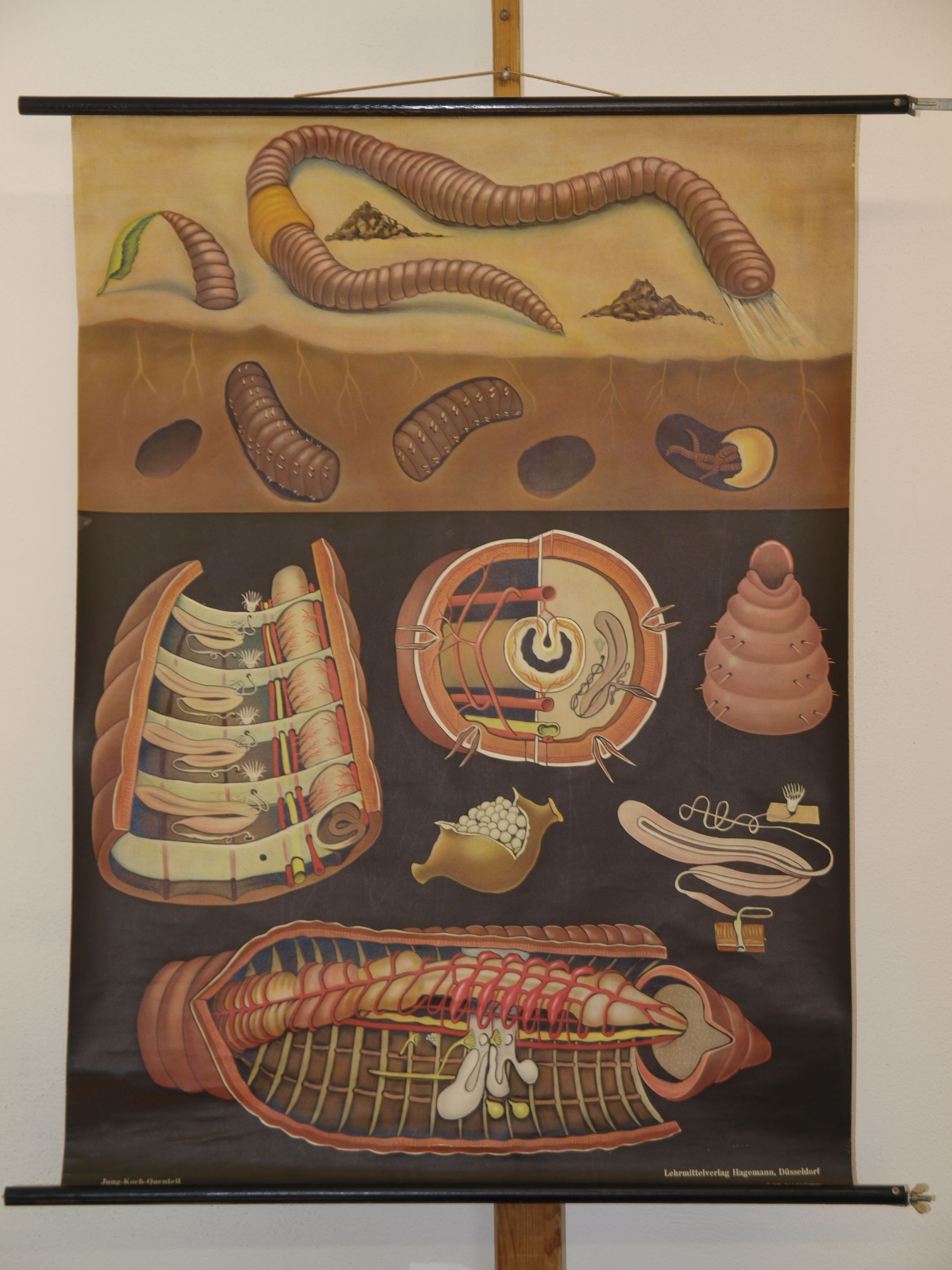 Jung Koch Quentell Tierbild Regenwurm Worm 1966 Schulwandbild Wandbild 82x112cm NrL261 JKQ40 Regenwurm (KX795) Hagemann, 1966, 82x112cm plus Stäbe, sehr gut, Earthworm Ver de terre Lombritz de Tierra Lombrico powered by plentymarkets