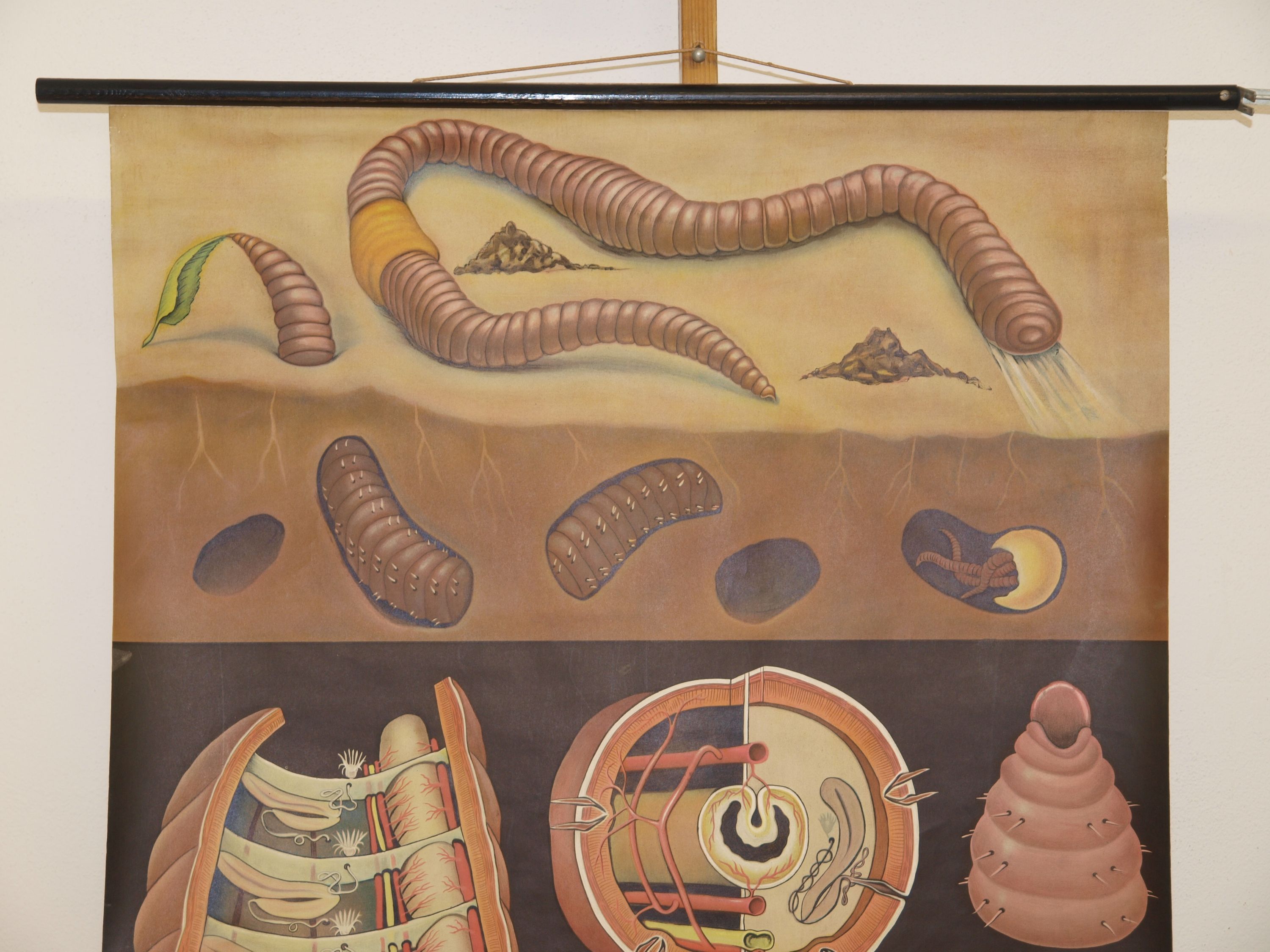 Jung Koch Quentell Tierbild Regenwurm Worm 1966 Schulwandbild Wandbild 82x112cm