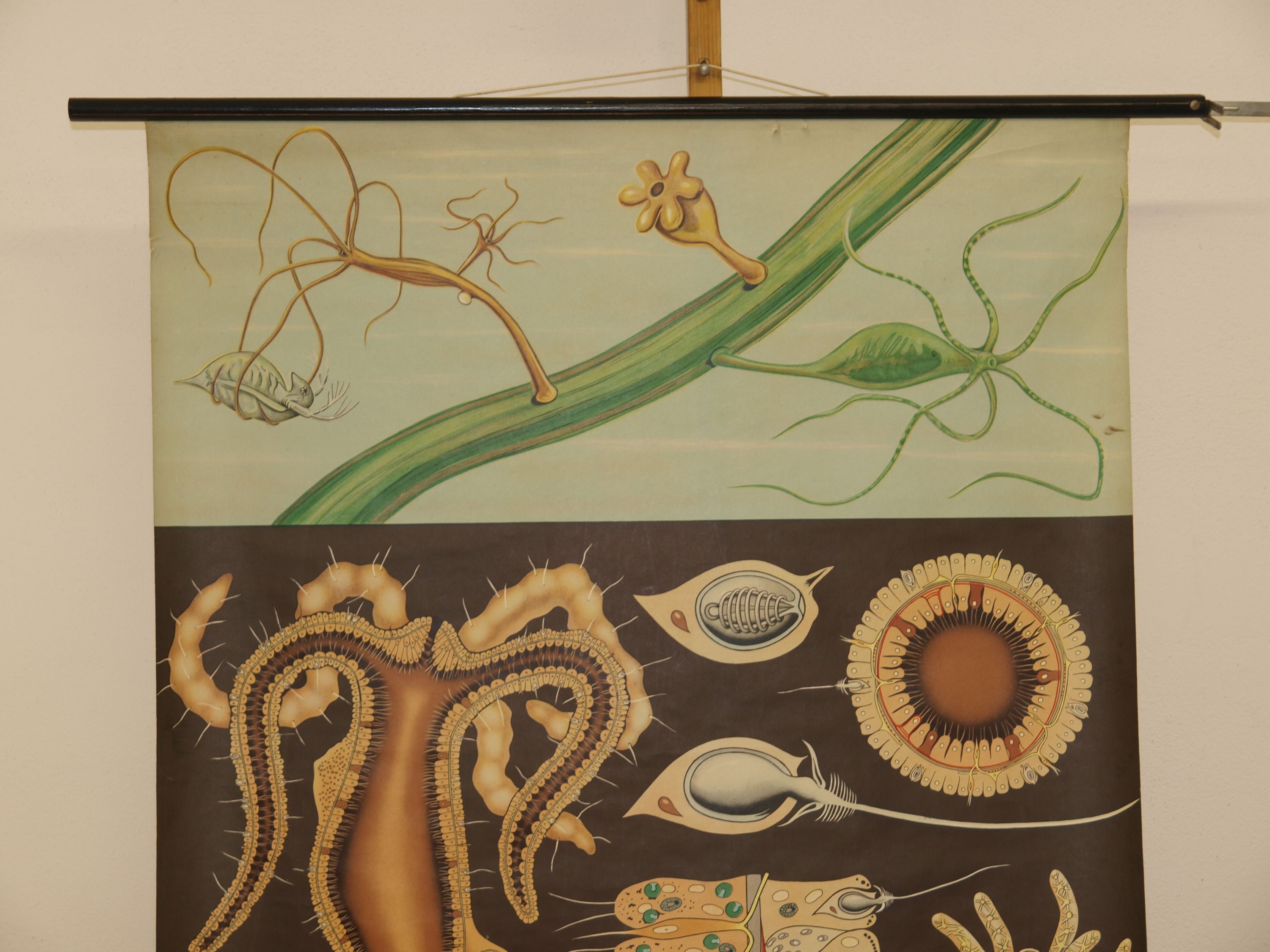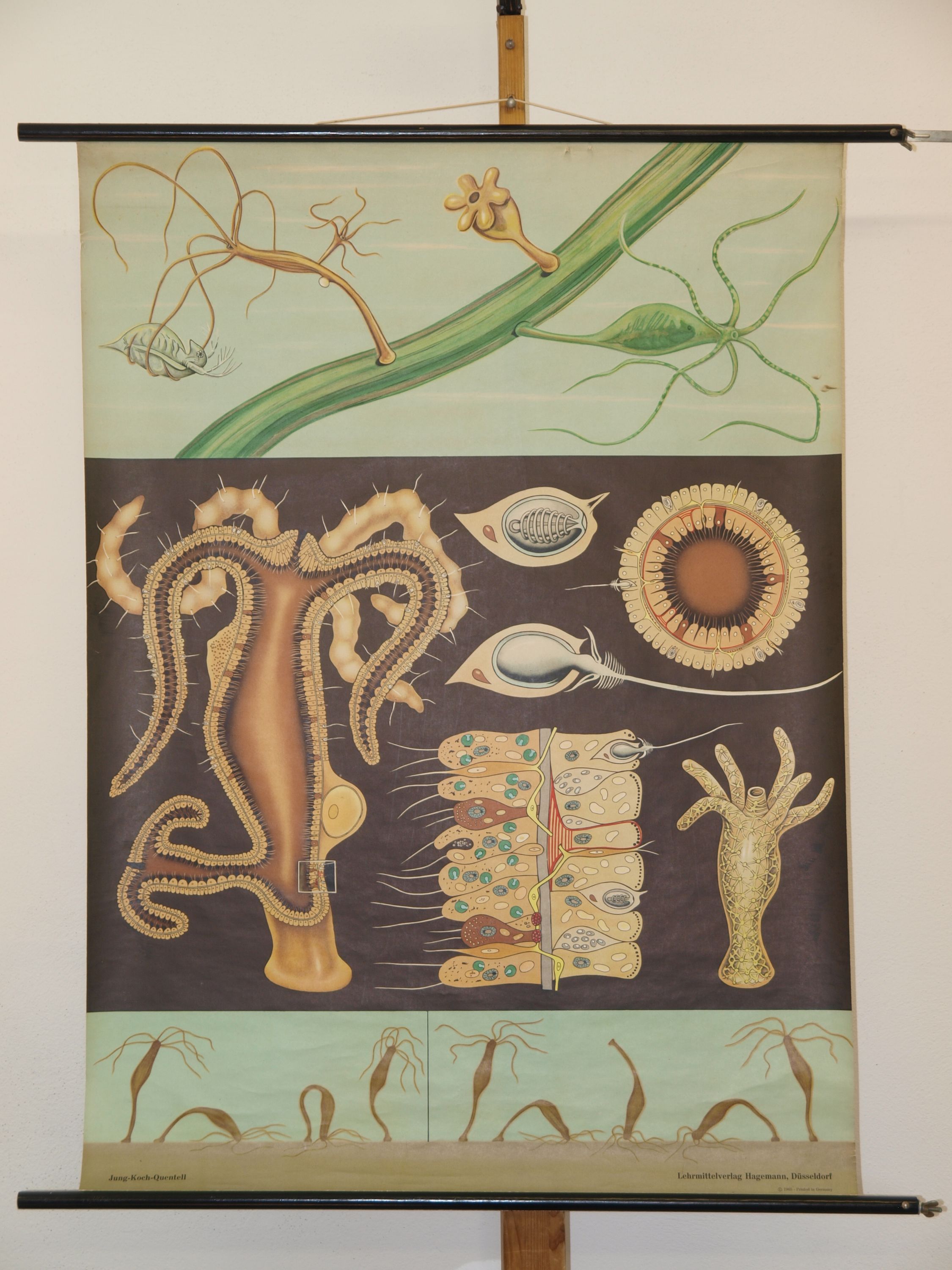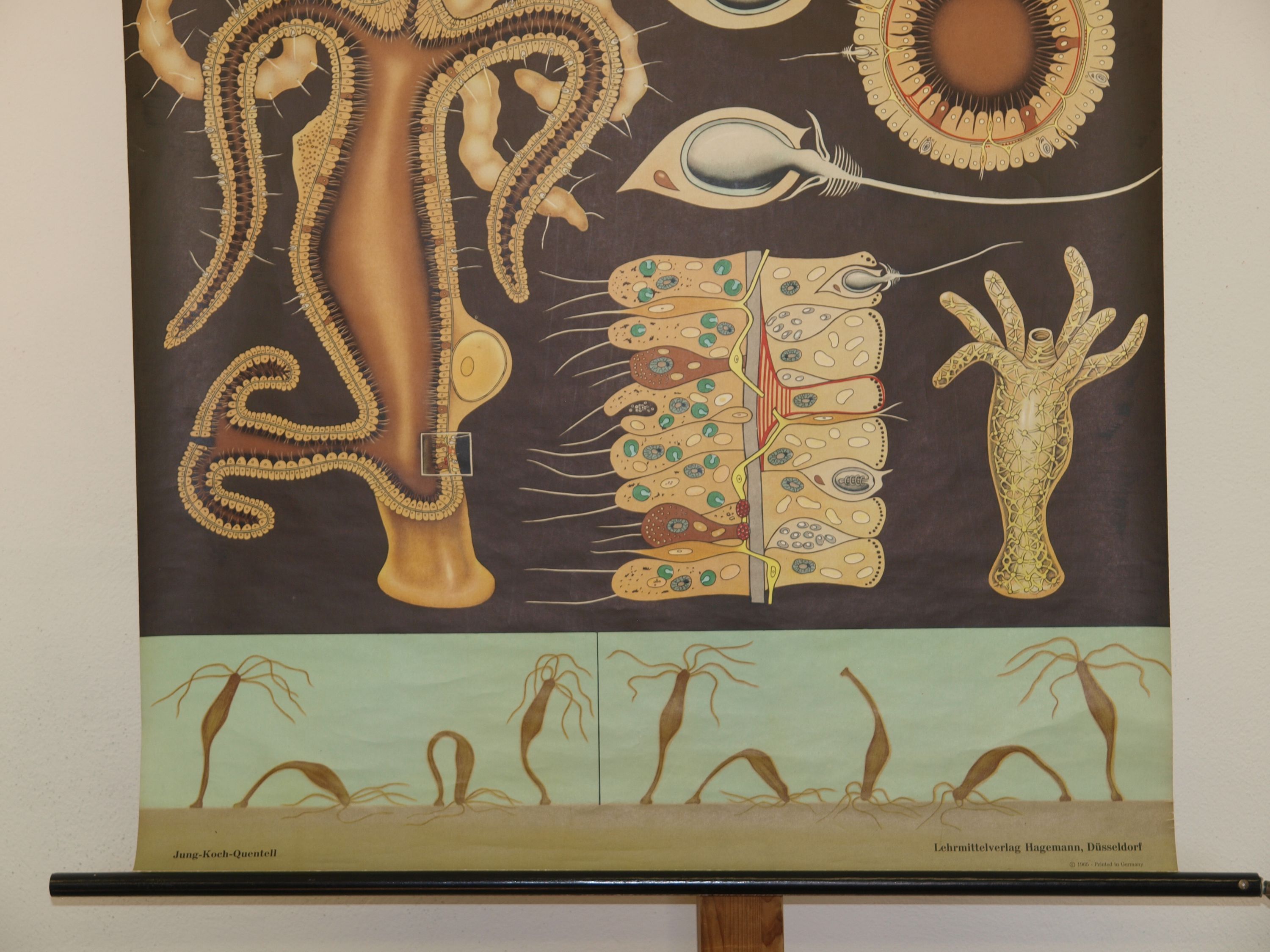 Jung Koch Quentell Tierbild Süßwasserpolyp Hydra 1965 Schulwandbild Wandbild 83x113cm