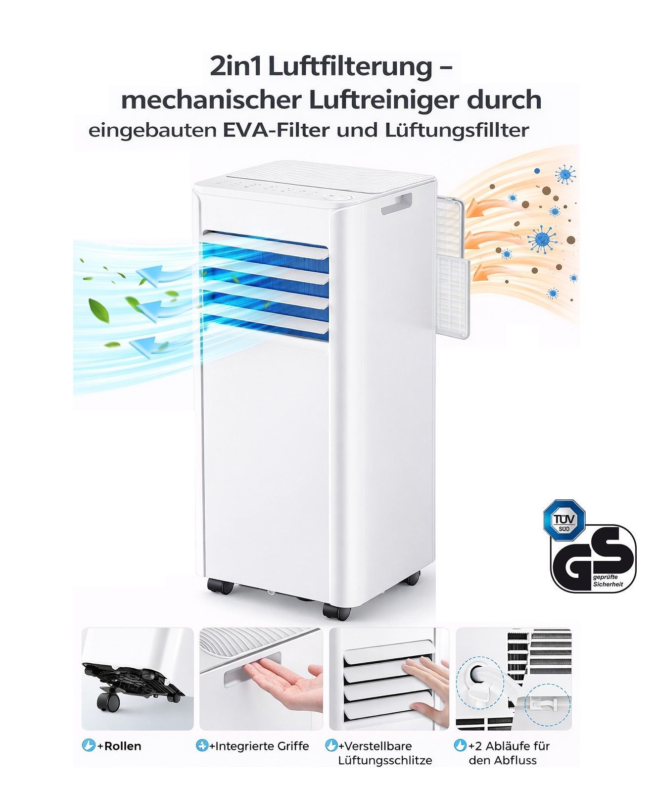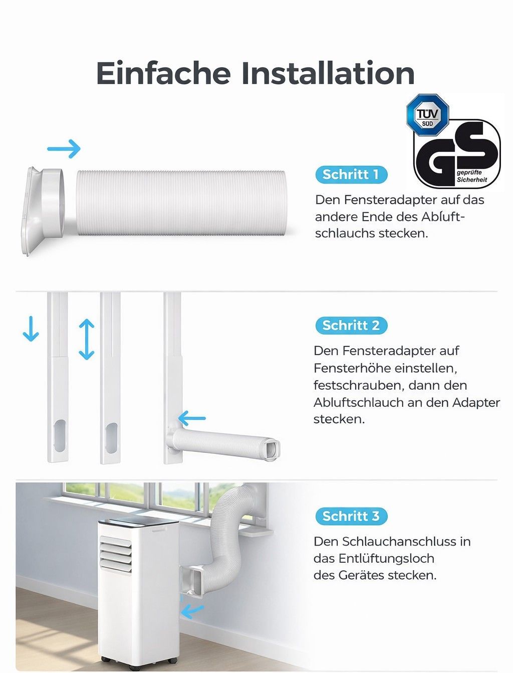 Jung Lifeair Mobile Klimaanlage 3in1 7000 BTU / 2 KW mobiles Klimagerät + Kit