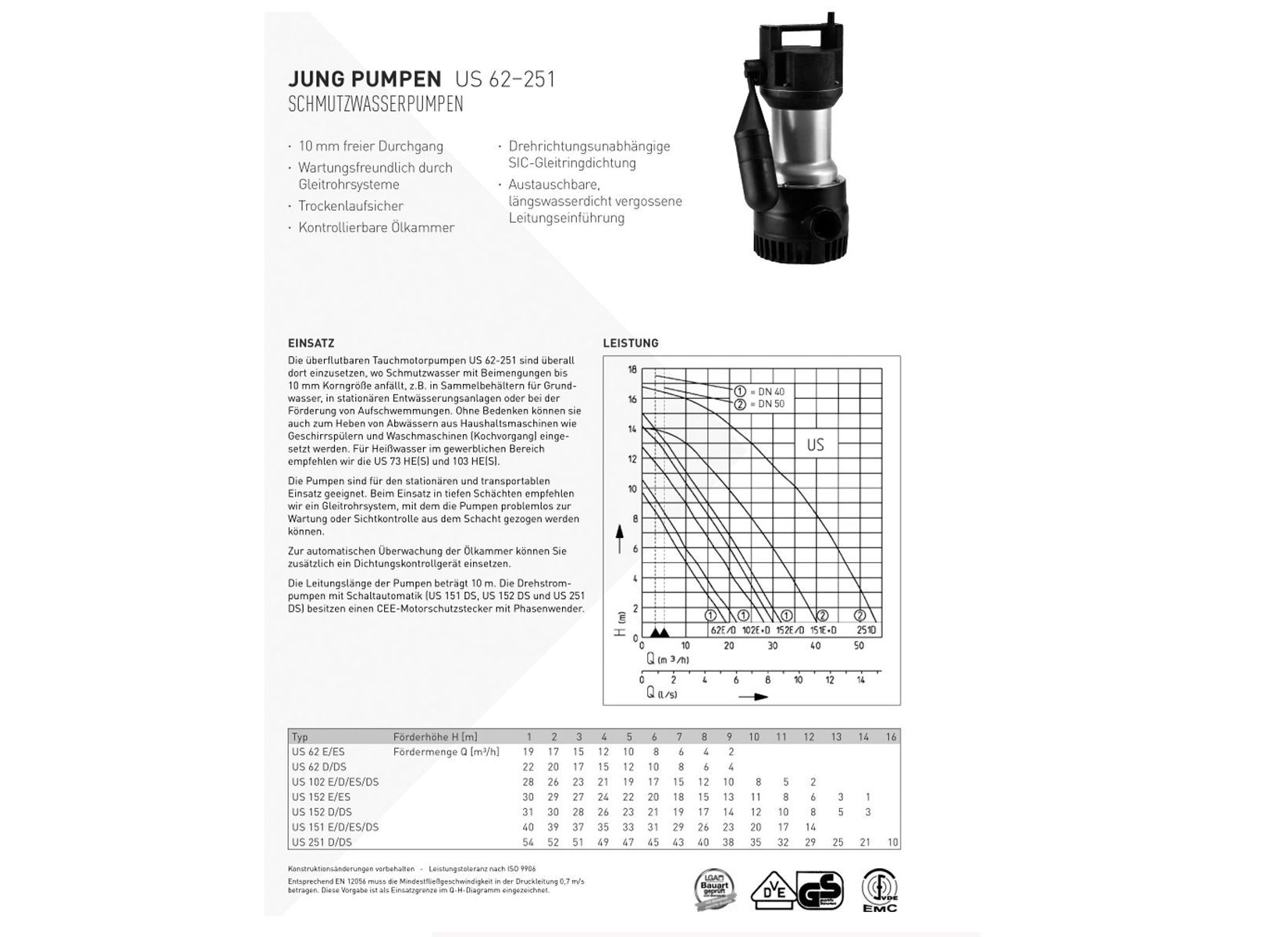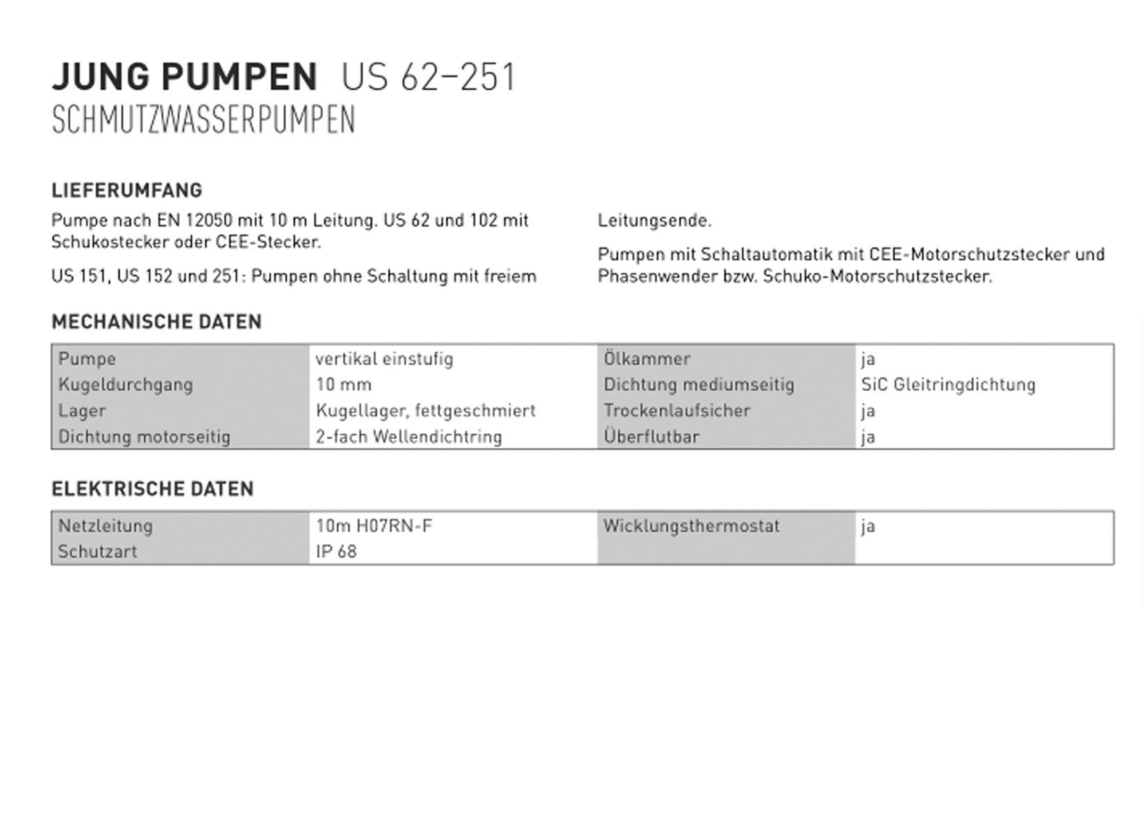 Jung Tauchpumpe US 62 ES US 62ES 09814 Schmutzwasserpumpe Drainagepumpe