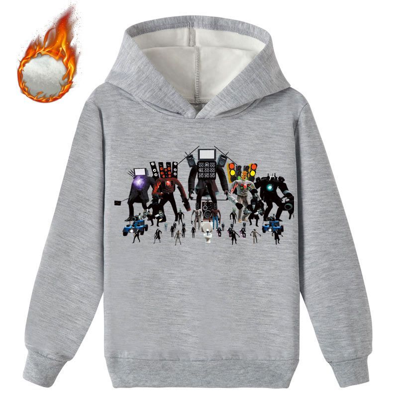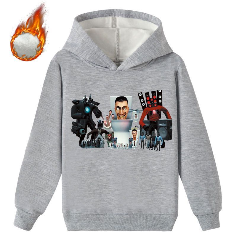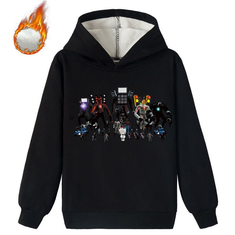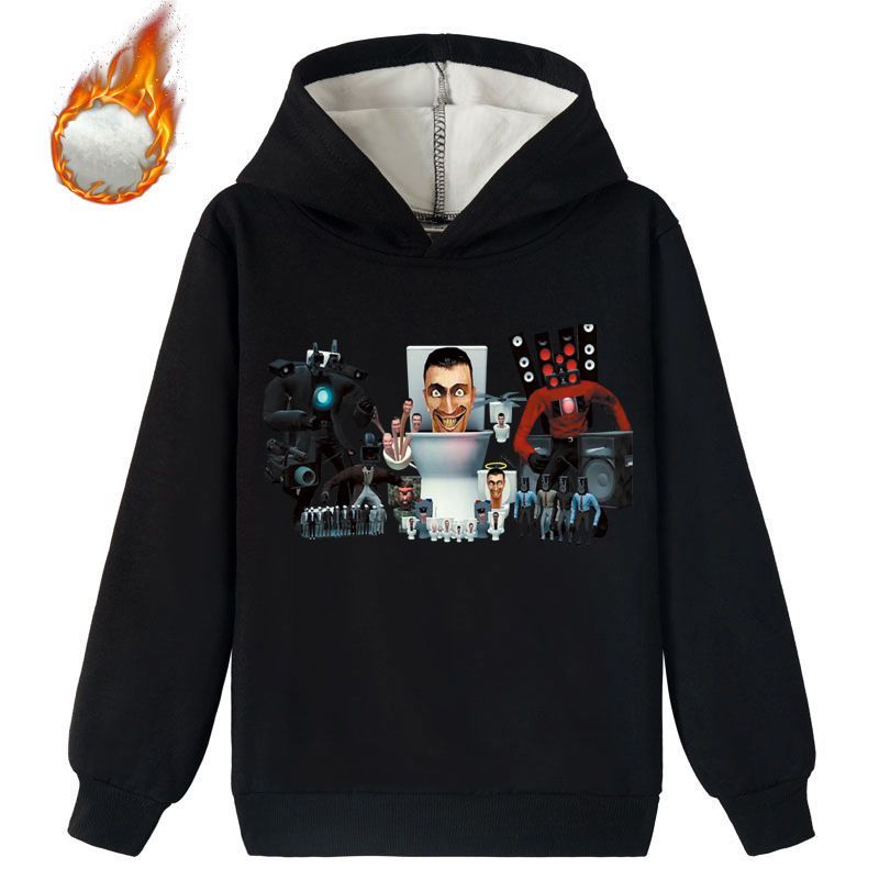 Jungen Hoodie Skibidi Toilet Cameraman Velvet Pullover TV Man Warm Kinder Sweatshirt