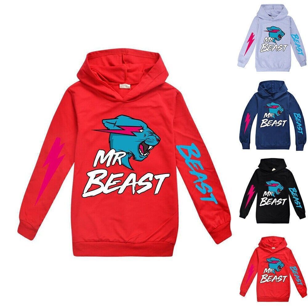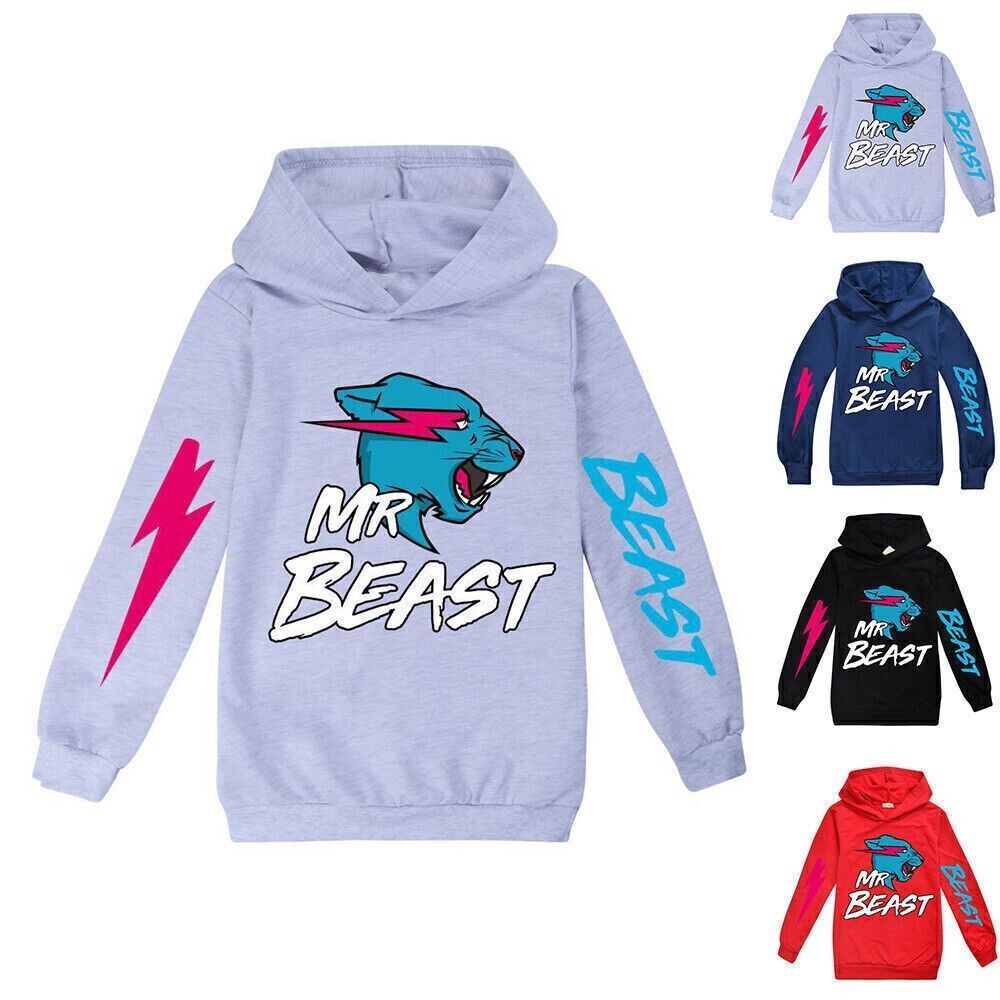 Jungen Madchen Mr Beast Bedruckter Kapuzenpullover mit Kapuze lassiges Pullover