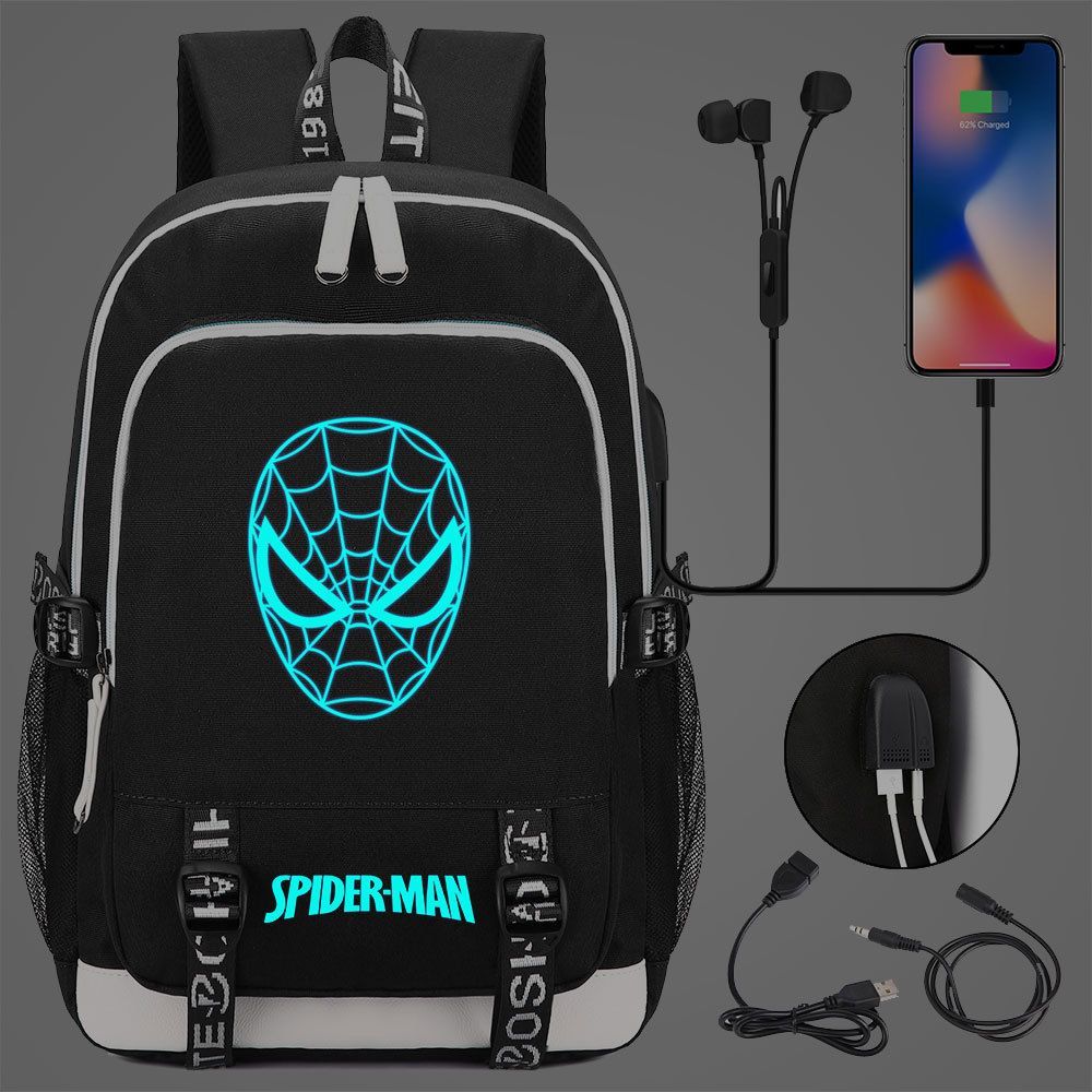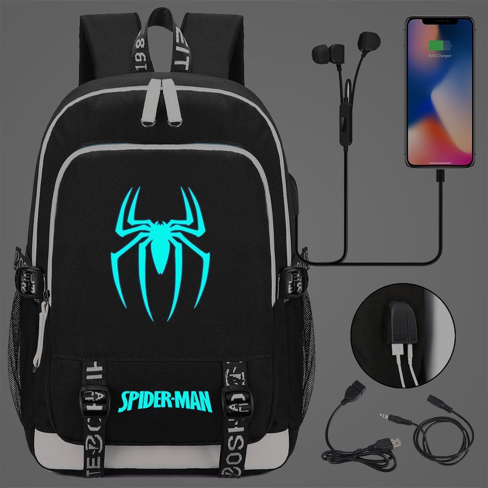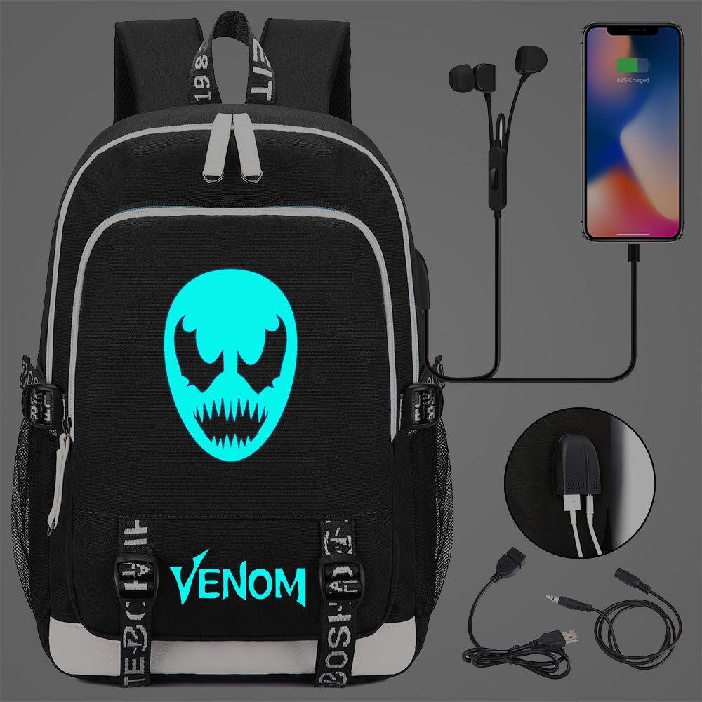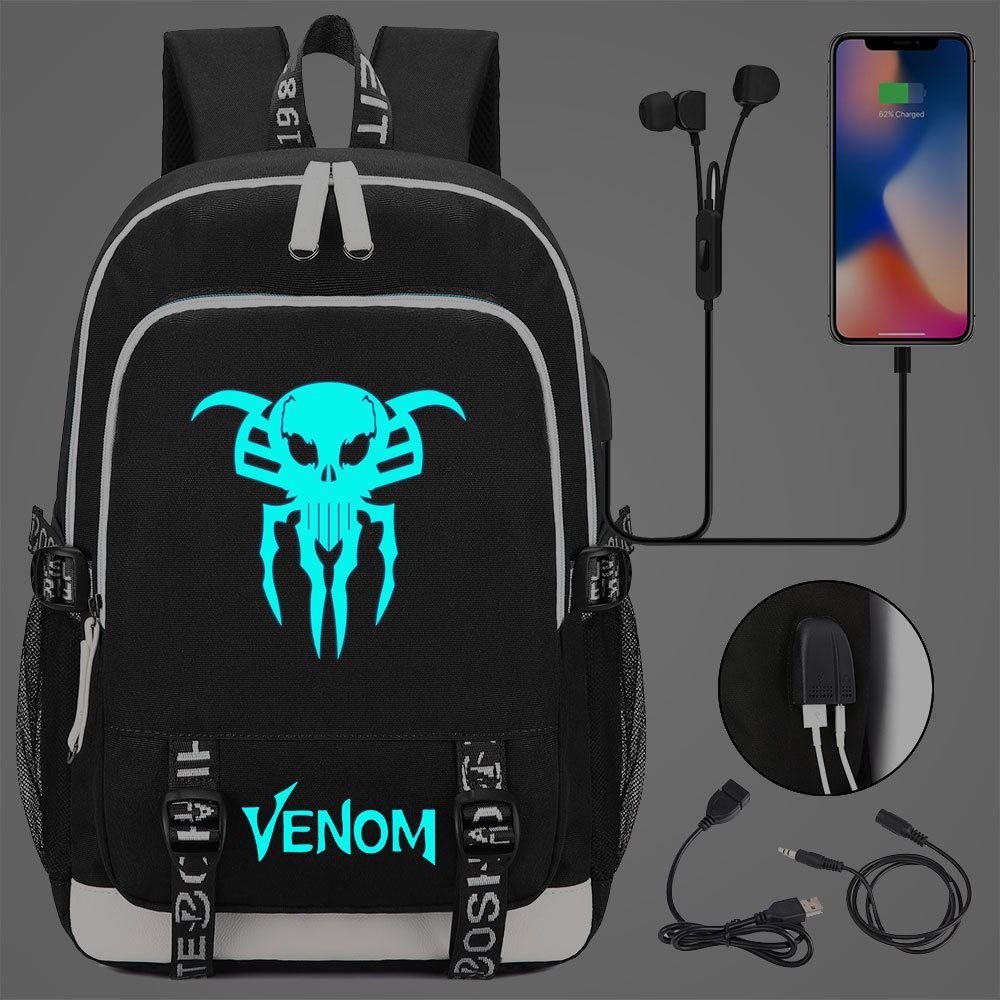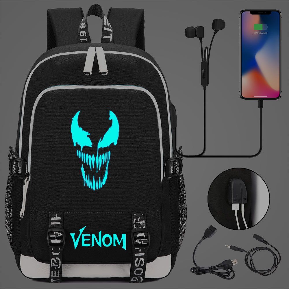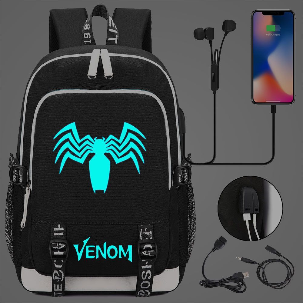 Jungen Venom Spiderman Merch Schultasche Blau Noctilucent Rucksack USB-Lade Backpack