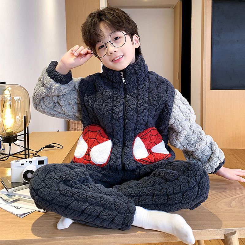 Jungen Winter Schlafanzug Spiderman Loungewear Fleece Nachtwäsche Pajamas Top + Hose