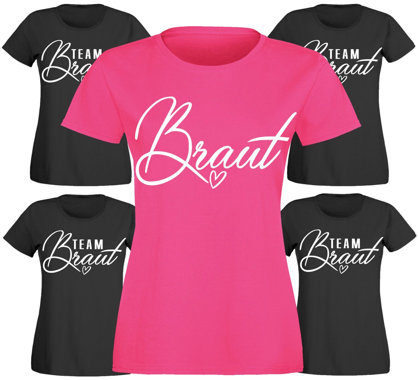 Fruit of the Loom Junggesellinnenabschied Frau/ Damen T-Shirt - Braut- Bride/ Team Braut JGA Brautju